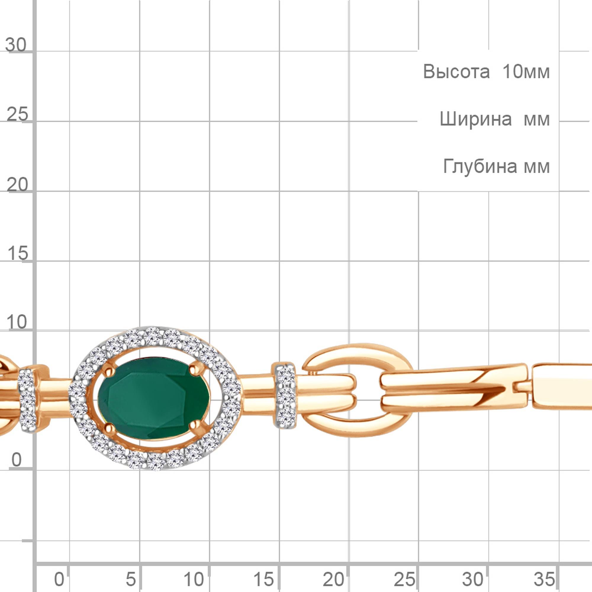 Ширина 3,5 мм Длина декоративного элемента 10 мм Ширина декоративного элемента 36 мм Размер камня 8*6 мм
