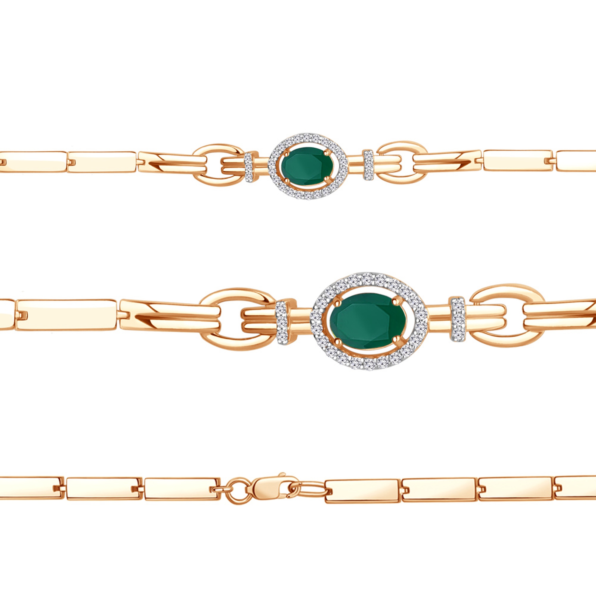 Браслет из золочёного серебра AQUAMARINE с фианитом и агатом А7478209А-п