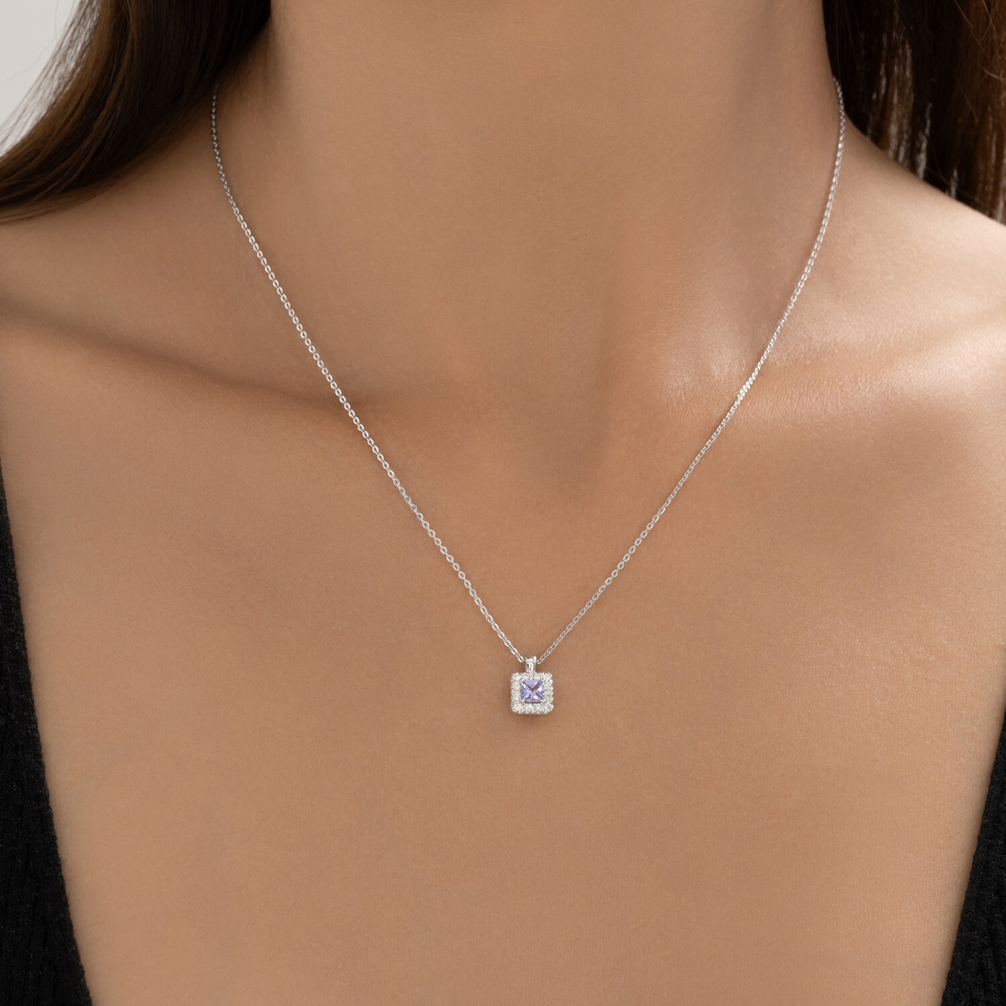 Колье из белого золота Diamant с бриллиантом и танзанитом 52-270-02788-2