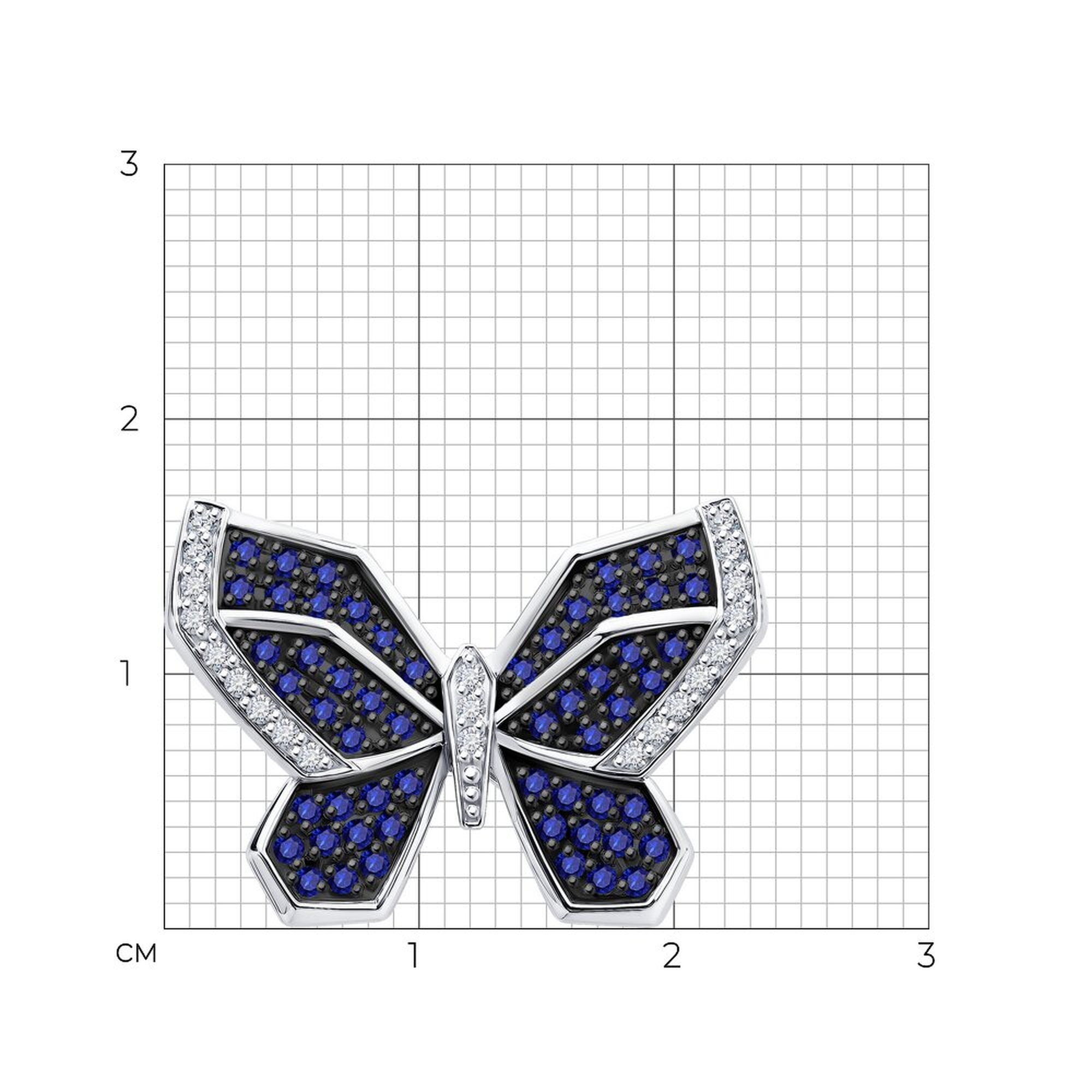 : Брошь из белого золота с бриллиантами и сапфирами 52-240-02975-2