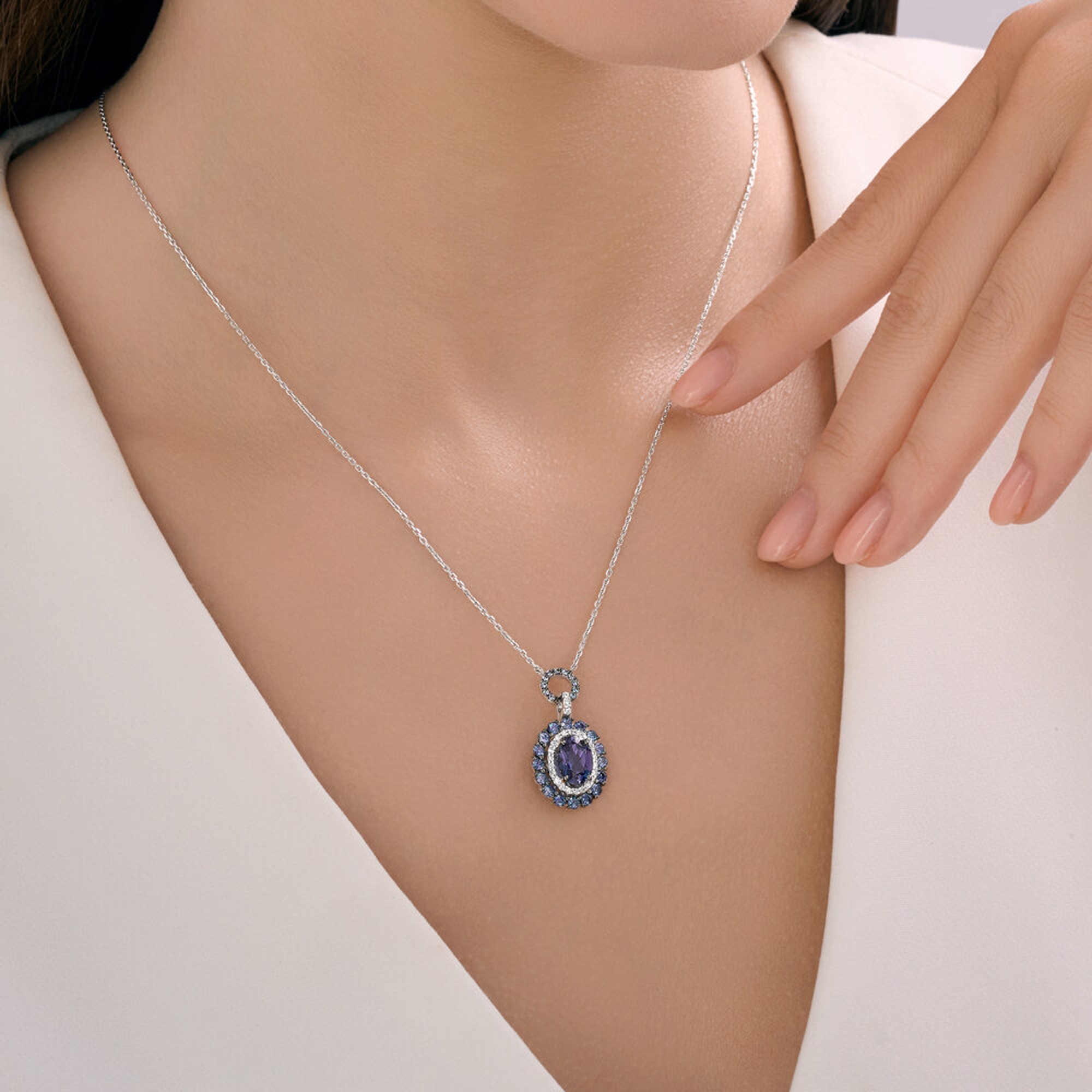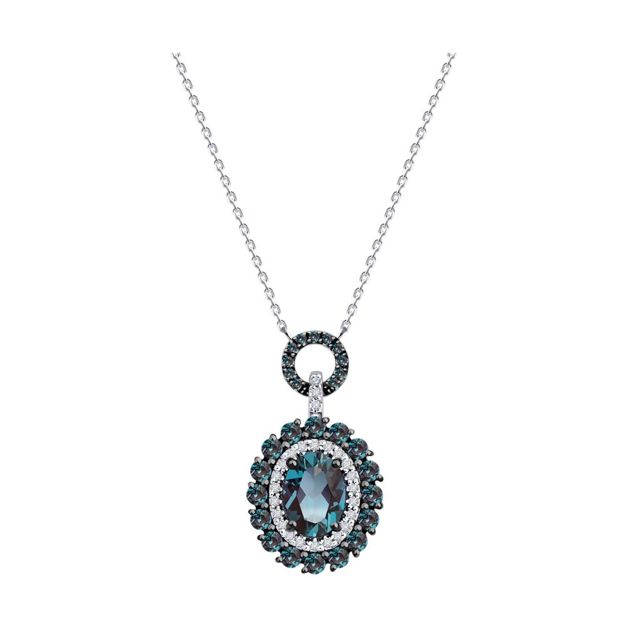 : Колье из белого золота с бриллиантами и гидротермальными александритами 6074076-3