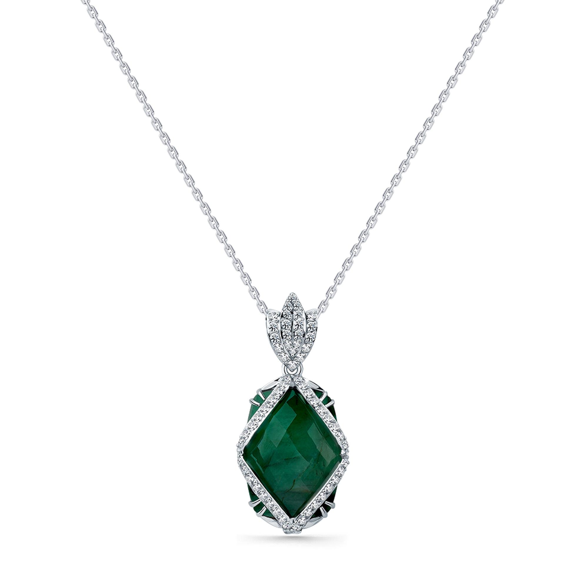Колье из белого золота Мастер Бриллиант с бриллиантом и изумрудом 05M6-260770-00-01