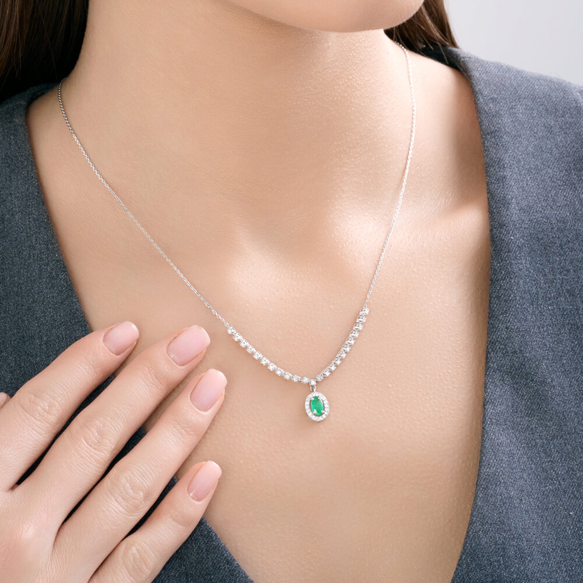 : Колье из белого золота с бриллиантами и изумрудом 3070045-3