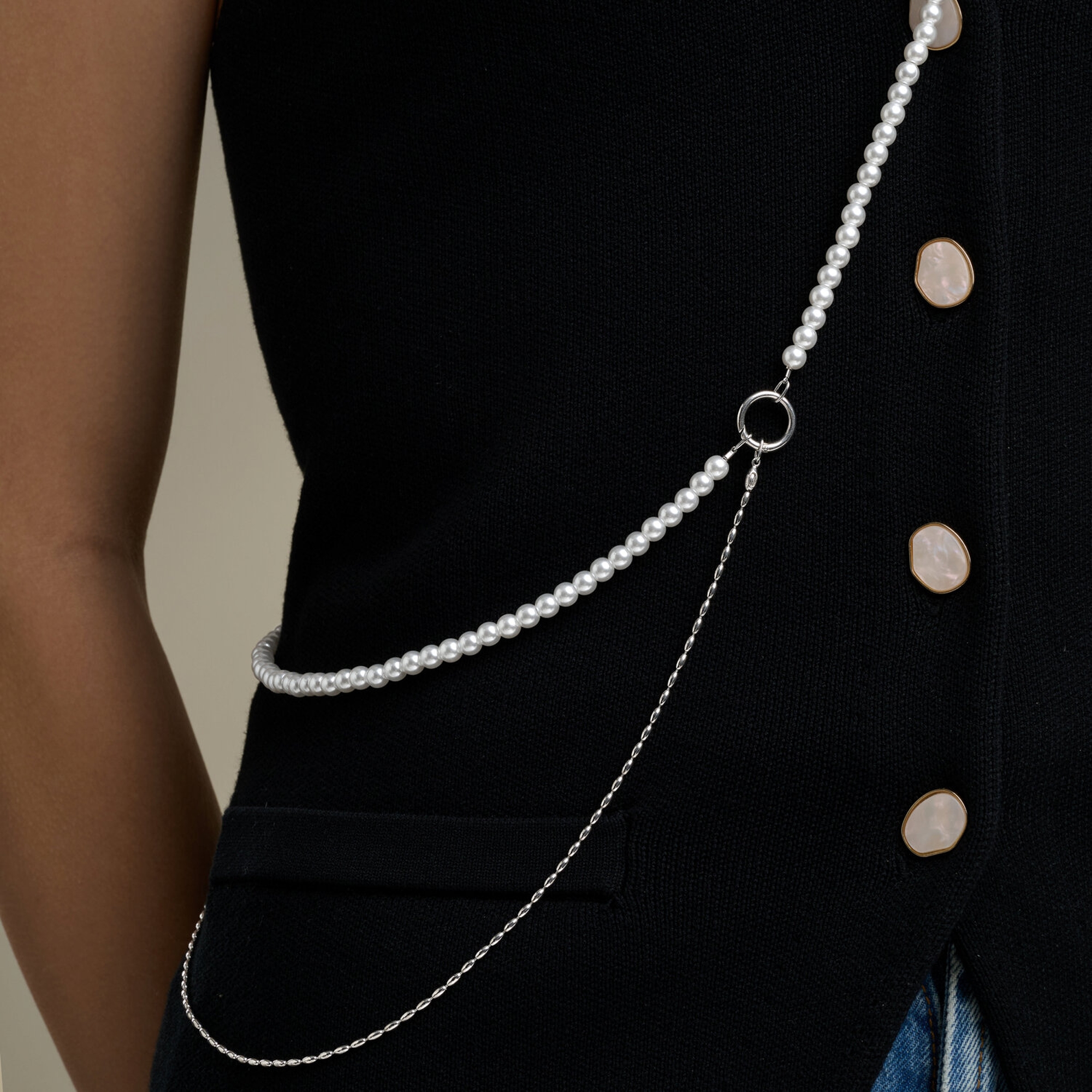 : Колье сотуар из серебра с синтетическим жемчугом 94071397