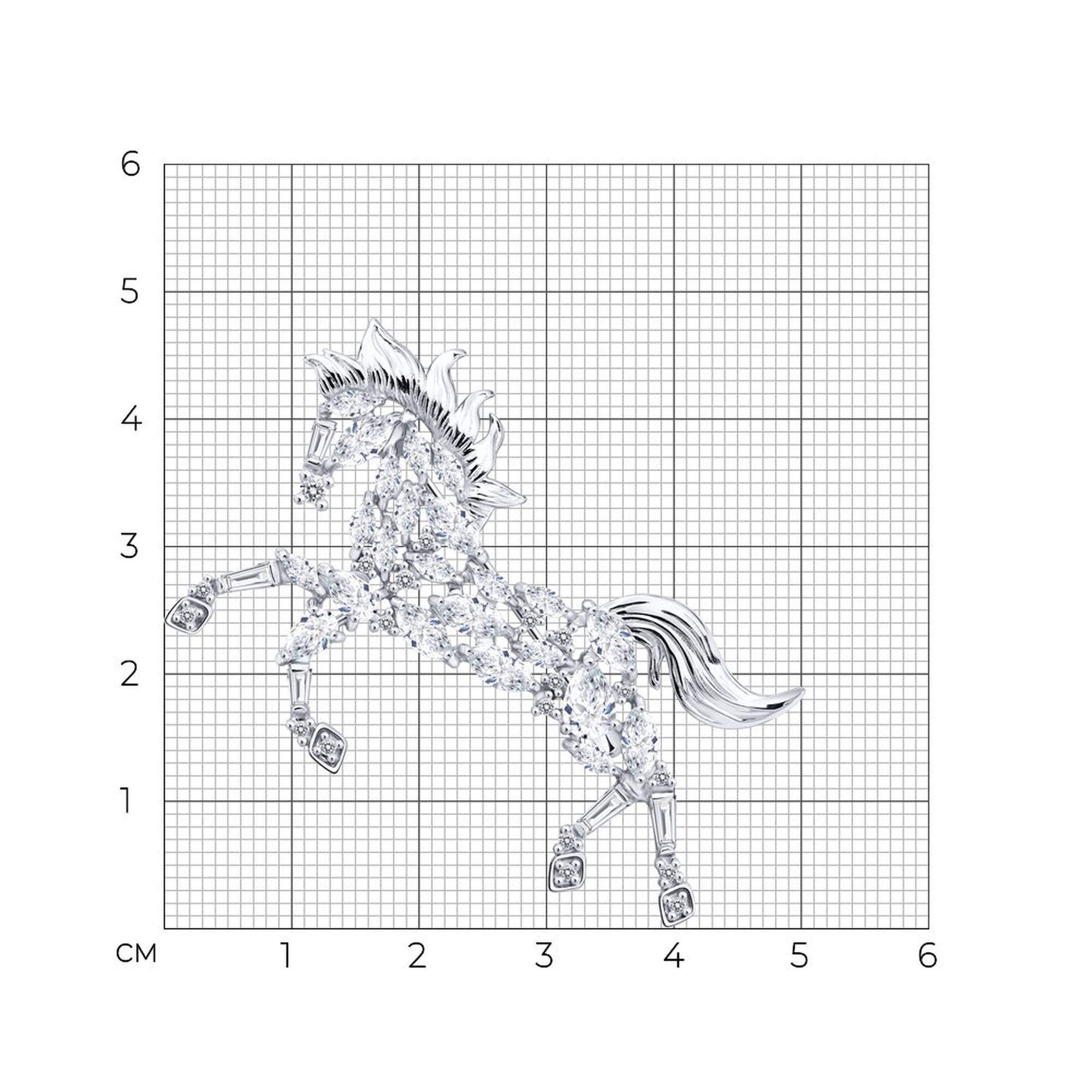Серебряная брошь Символ года Лошадь Diamant с фианитом 94-140-00267-1