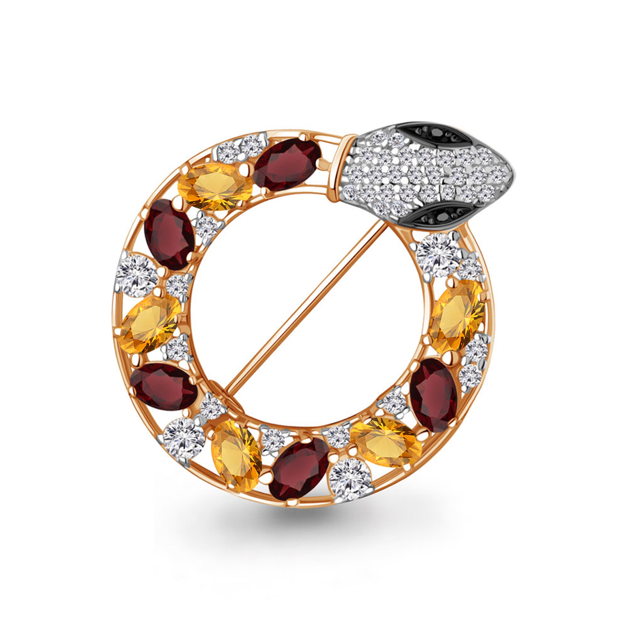 Брошь Символ года Змея из золоченого серебра AQUAMARINE с фианитом. цитрином,гранатом и ювелирным кристалом - это отличное украшения по низкой цене. Сайт Novikov24.ru является официальным представителем и предоставляет только оригинальные украшения AQUAMARINE.