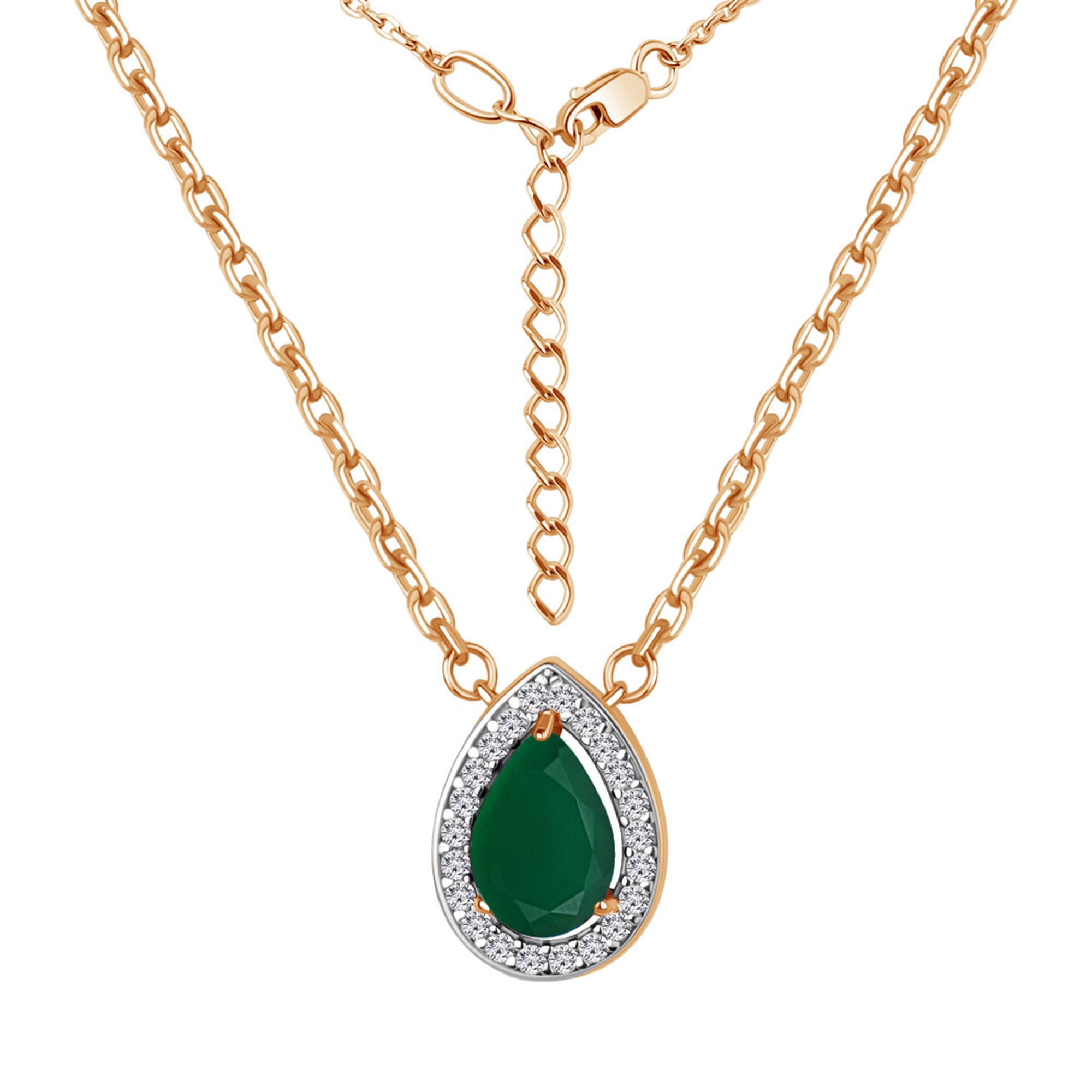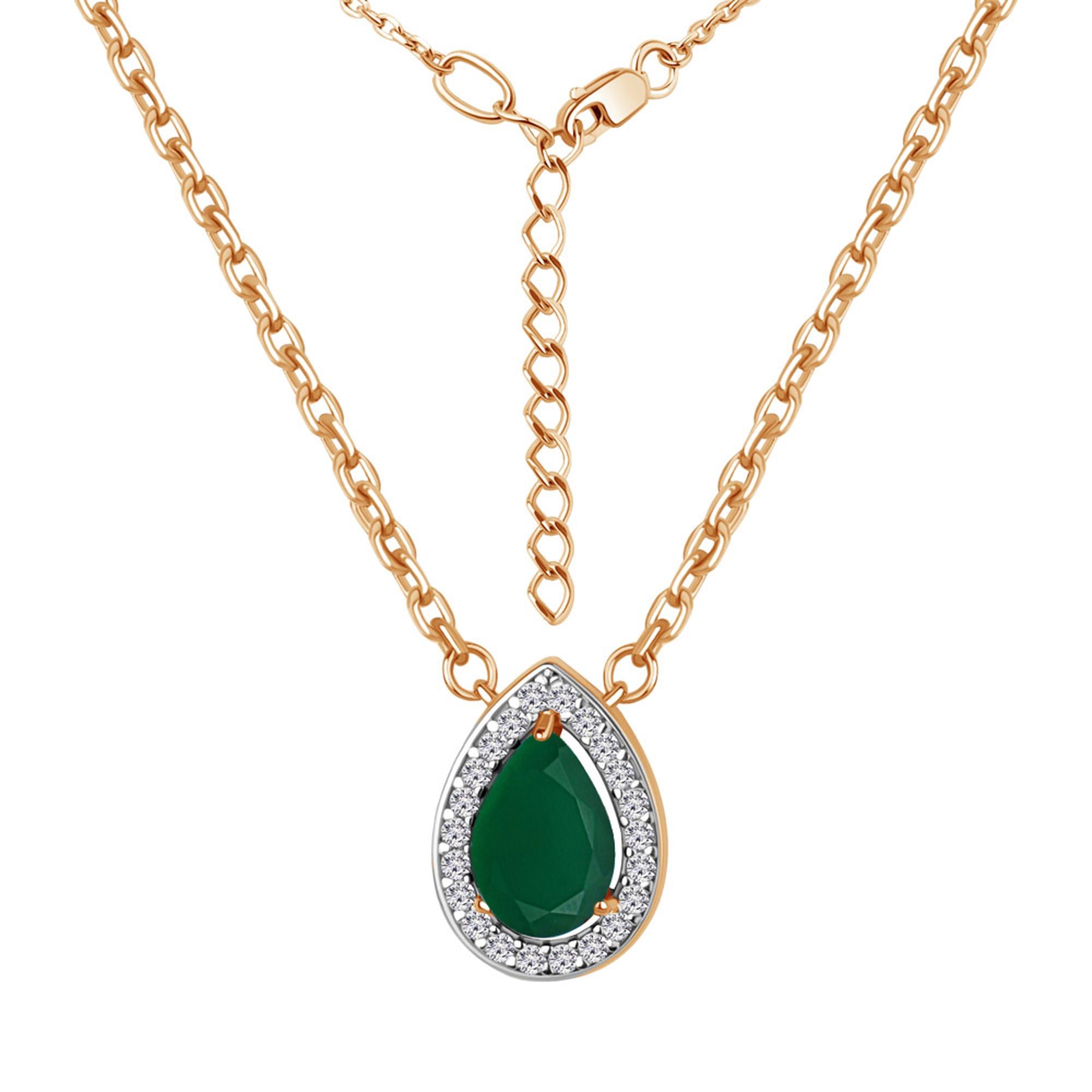 Колье из золочёного серебра AQUAMARINE с фианитом и агатом А7381209А-п