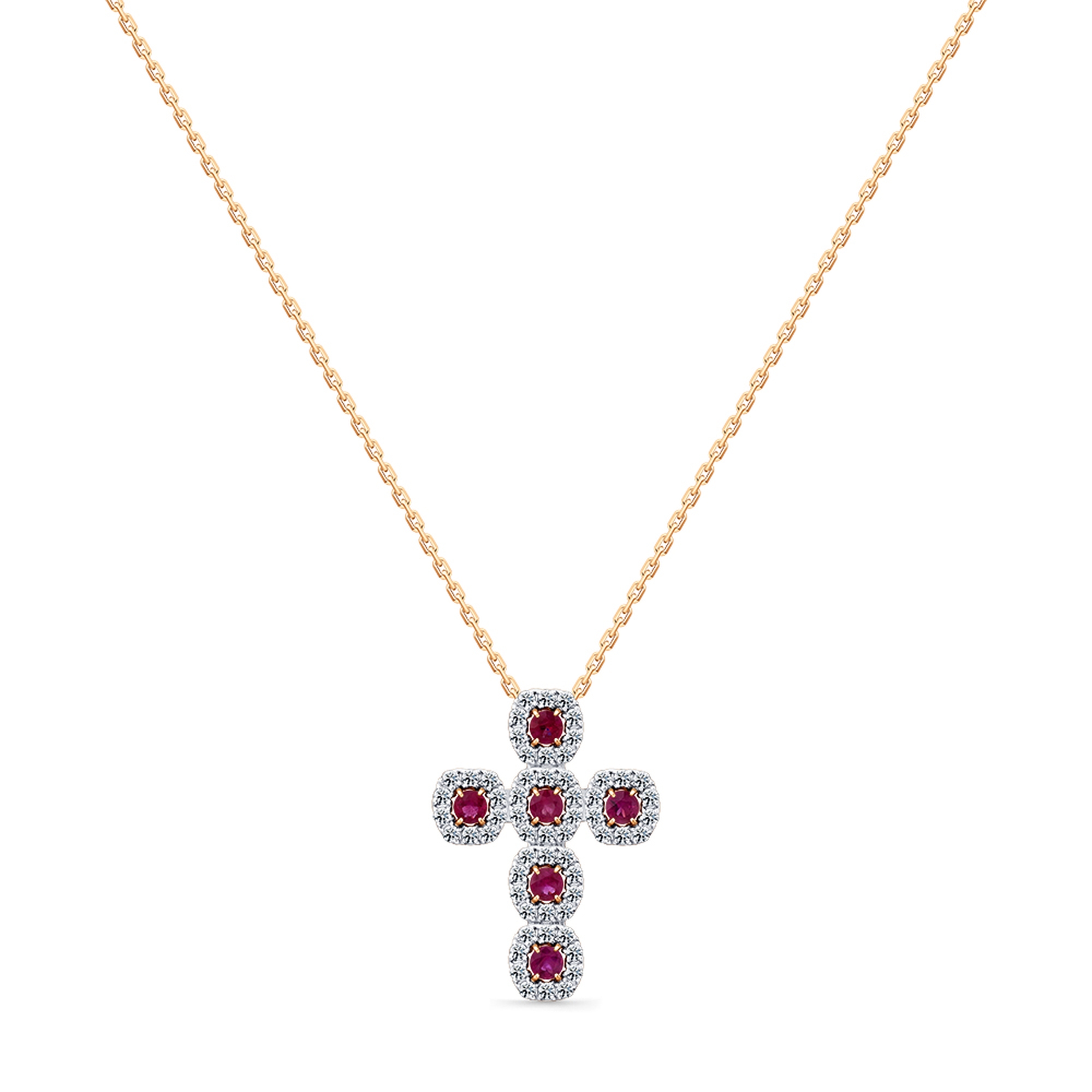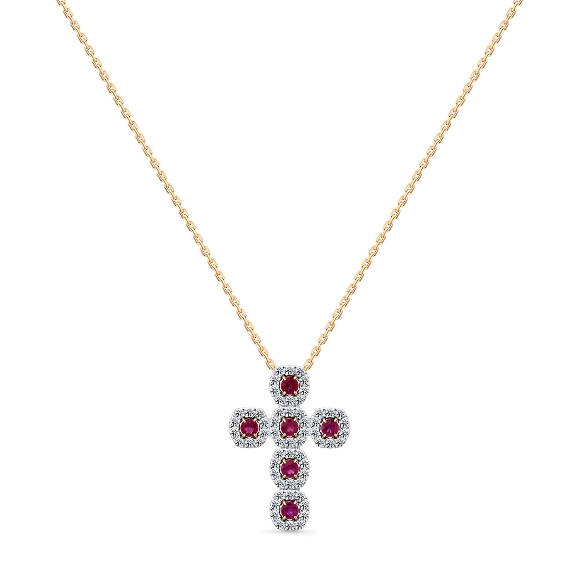 Золотое колье-крест Мастер Бриллиант с рубином и бриллиантом 01M6-160838-00-03