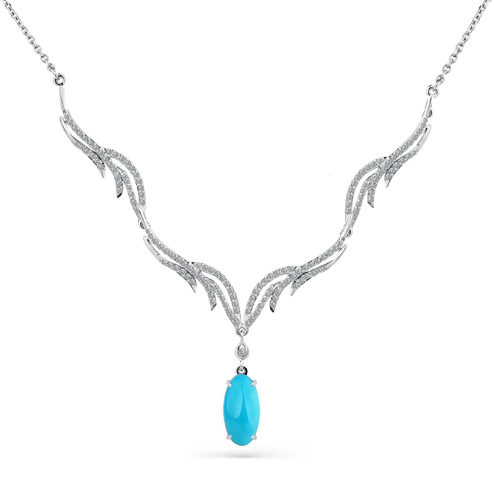 Колье из белого золота Мастер Бриллиант с бриллиантом и бирюзой 05M6-260474-00-38