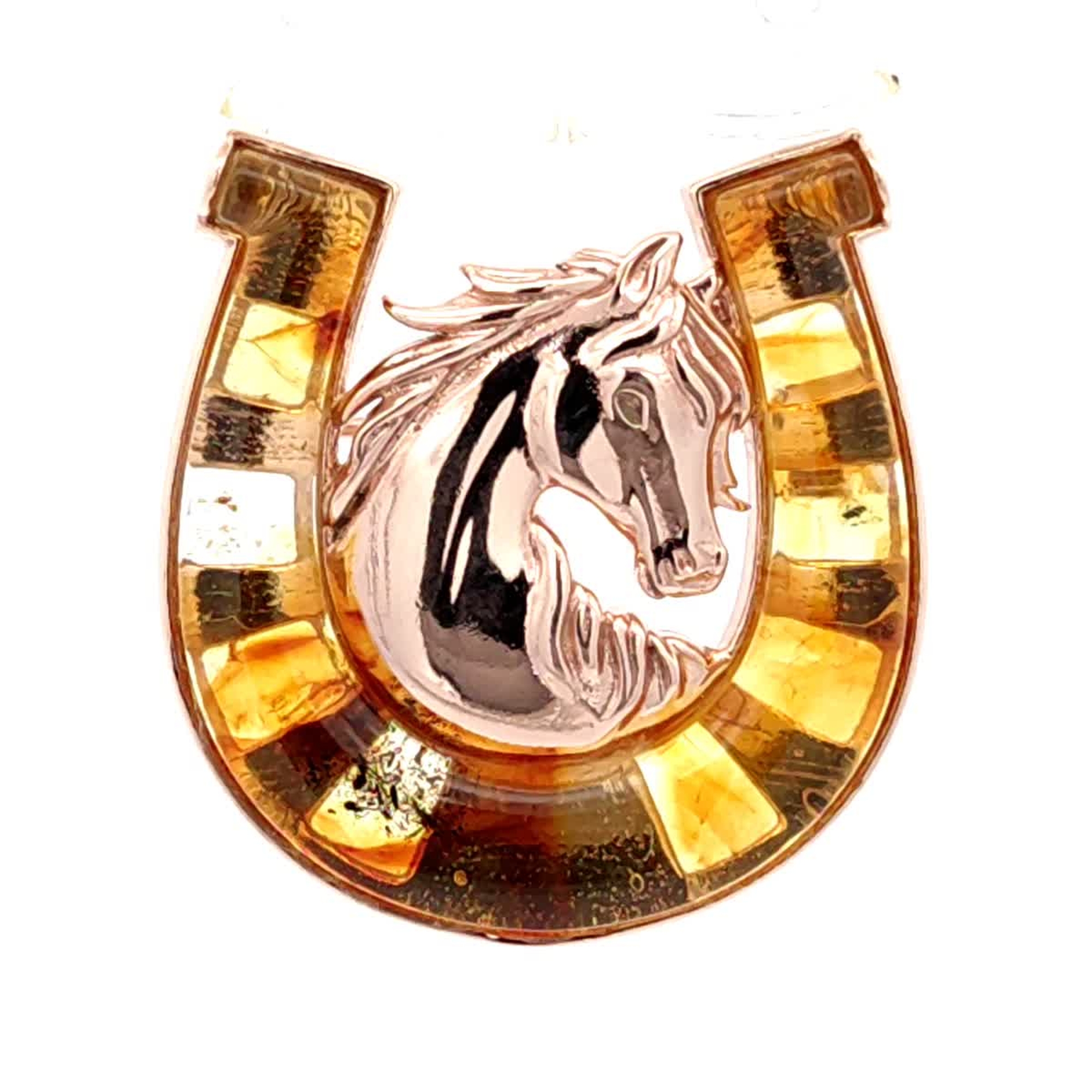 Брошь из золочёного серебра Символ года Лошадь Дарвин с янтарём 127042043aa-ск