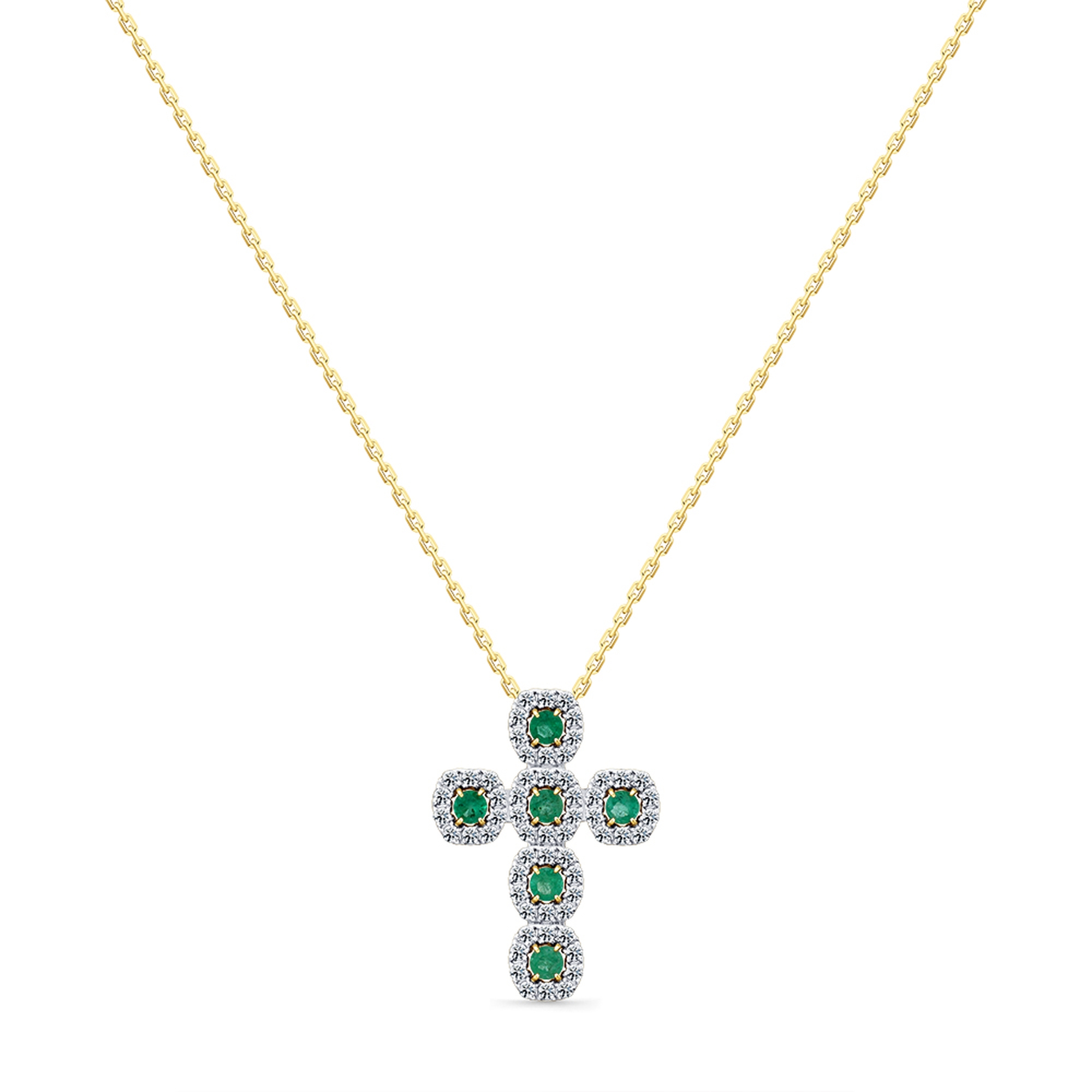 Колье-крест из лимонного золота Мастер Бриллиант с изумрудом и бриллиантом 06M6-360838-00-01