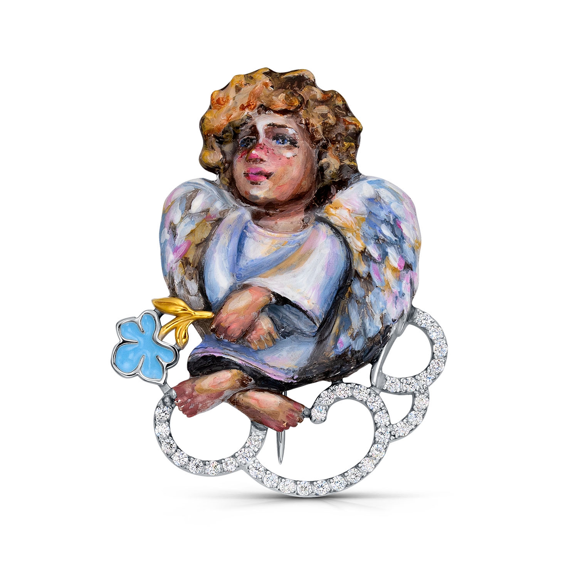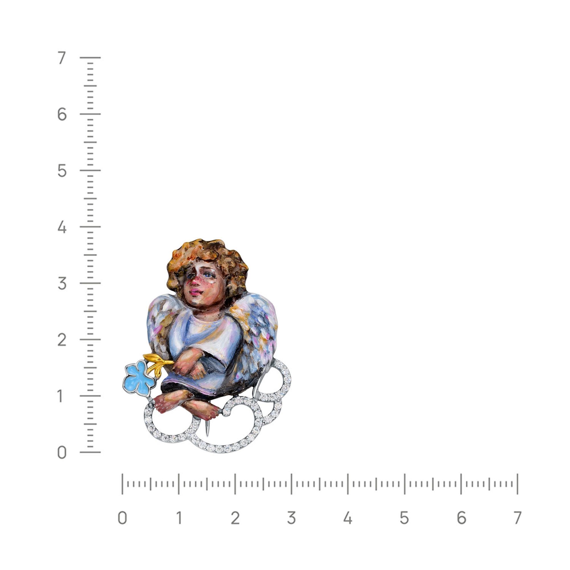Серебряная брошь KABAROVSKY с фианитом и эмалью K5-164-7950