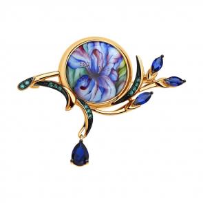 Золотое кольцо SOKOLOV с фианитом и сапфировым корундом 715515