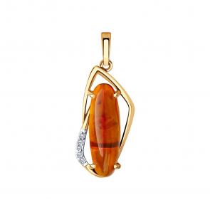 Золотое кольцо SOKOLOV с фианитом и янтарём 715880
