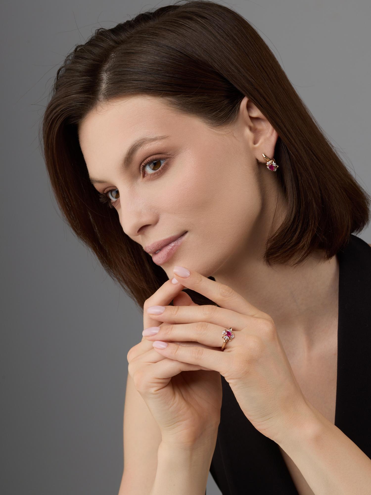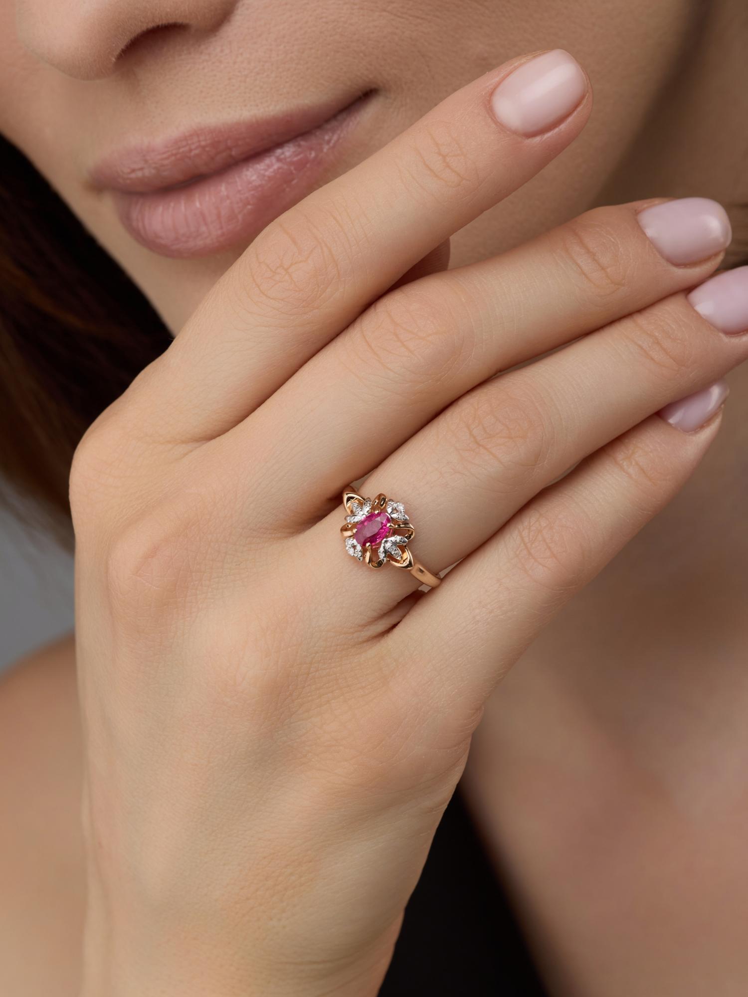Золотое кольцо АЛЬКОР с бриллиантом и рубином 14342-103