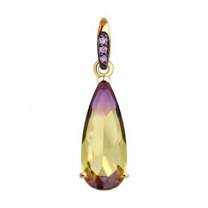Золотое кольцо SOKOLOV с ситаллом цвета Аметрин и фианитом 716882