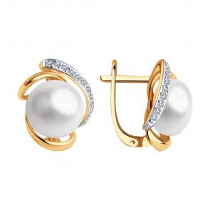 Золотое кольцо SOKOLOV с фианитом и жемчугом 791230