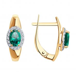 Золотое кольцо SOKOLOV с фианитом и гидротермальным изумрудом 716292