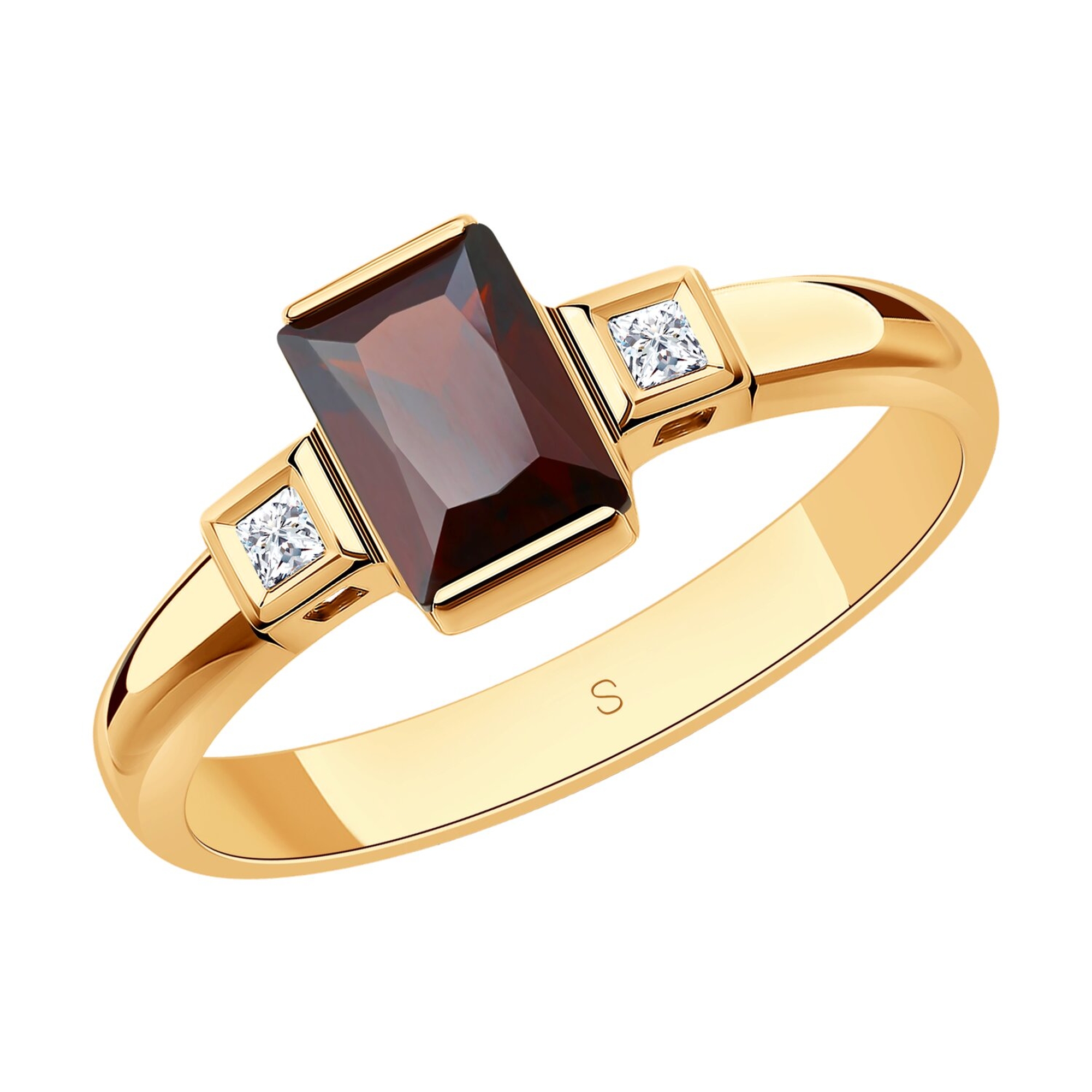 Золотое кольцо SOKOLOV с фианитом и гранатом 717022