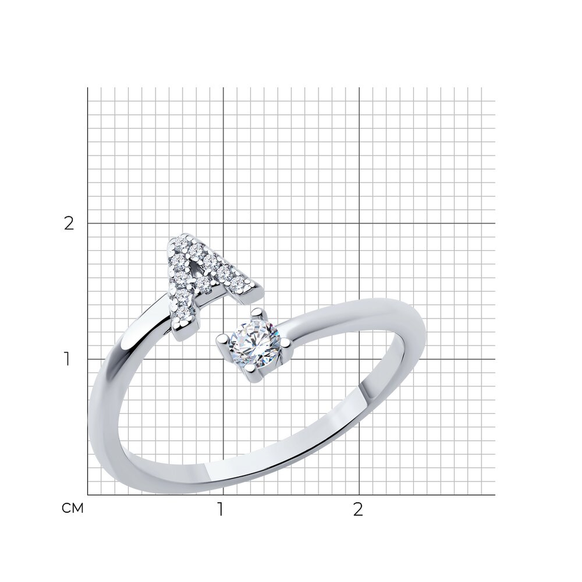 Серебряное кольцо-буква А SOKOLOV с фианитом 94014028-91