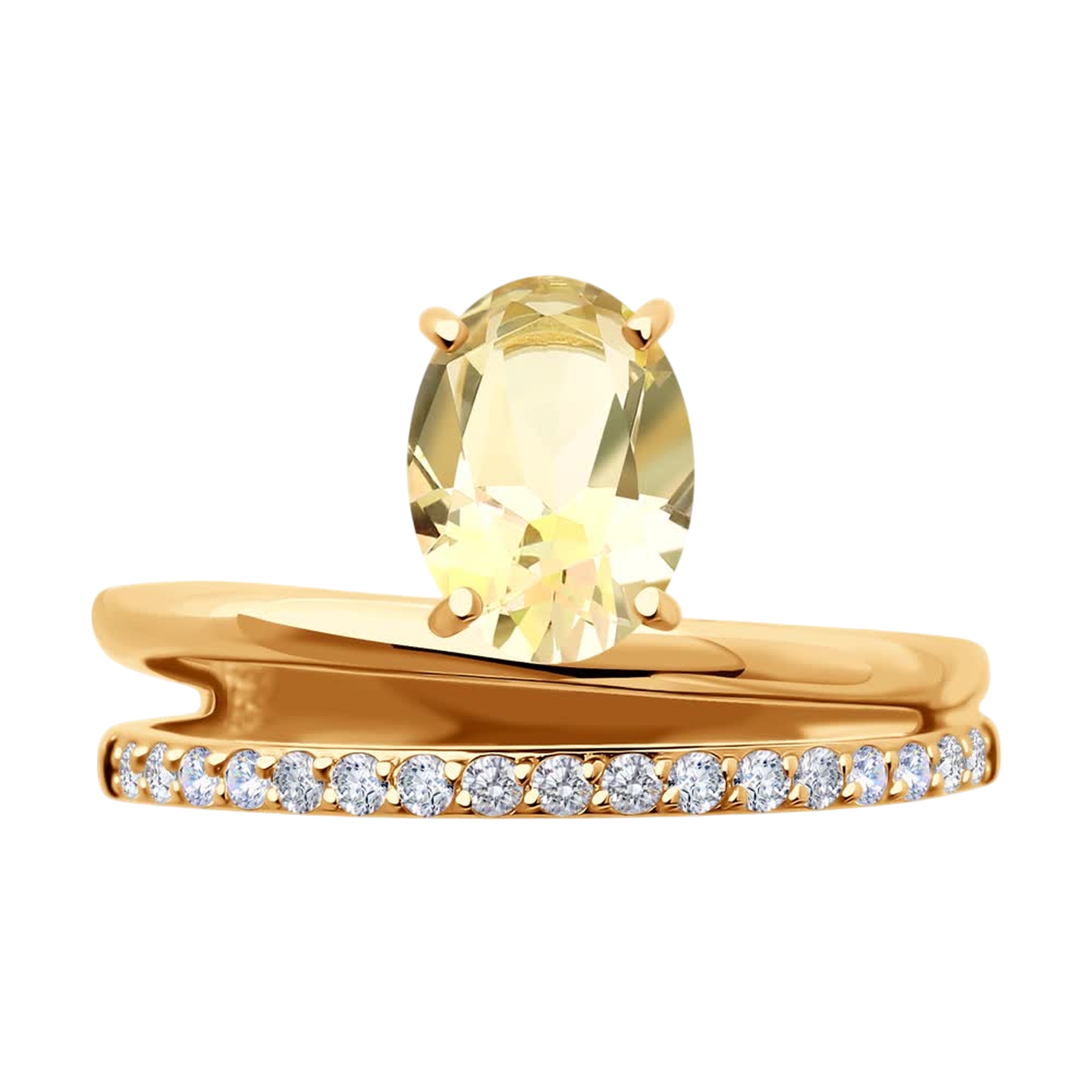Золотое кольцо SOKOLOV с фианитом и кварцем 716353