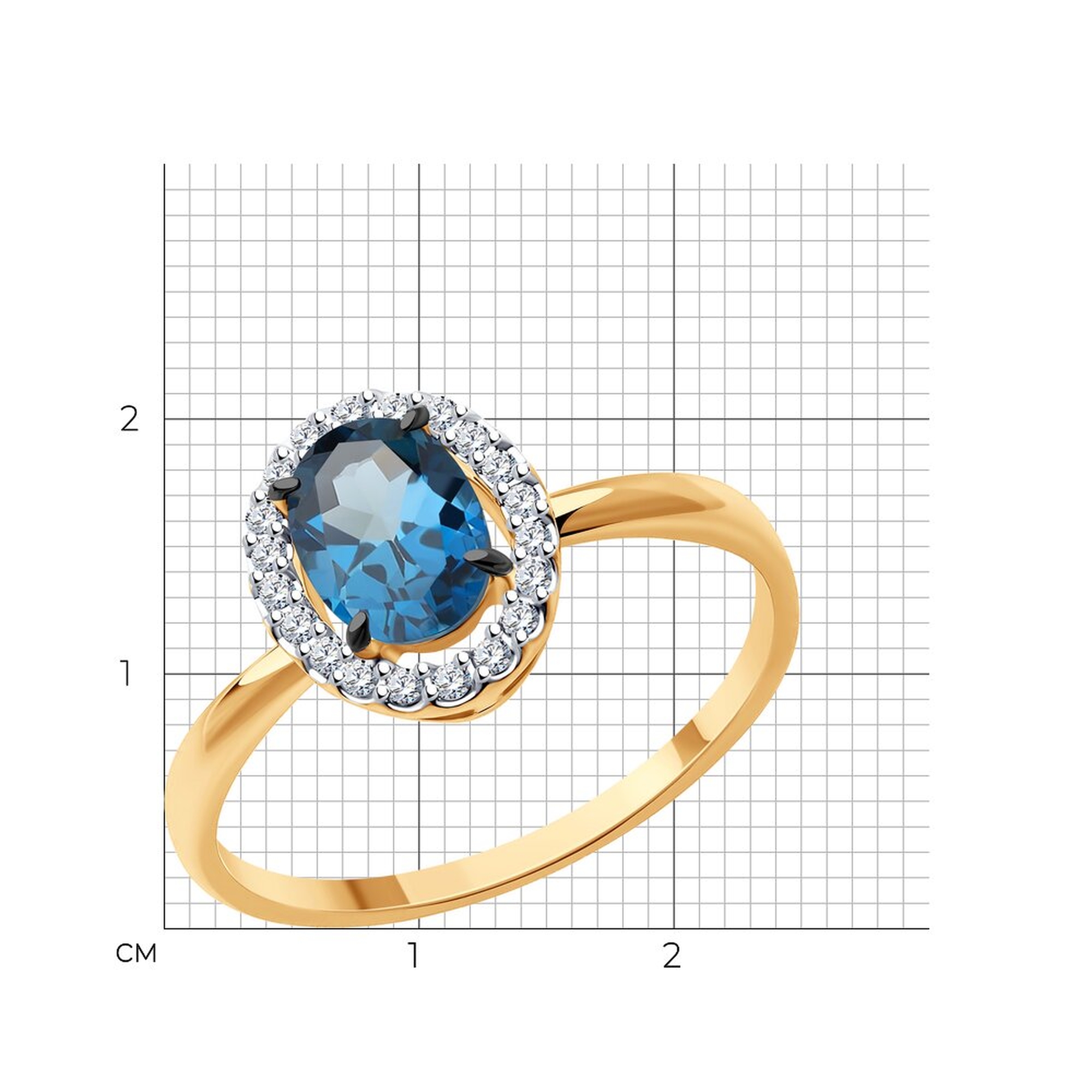Золотое кольцо SOKOLOV с фианитом и Лондон топазом 51-310-02049-2