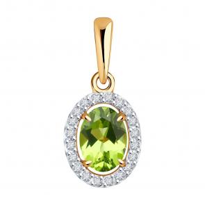 Золотое кольцо Diamant с фианитом и хризолитом 51-310-02049-5