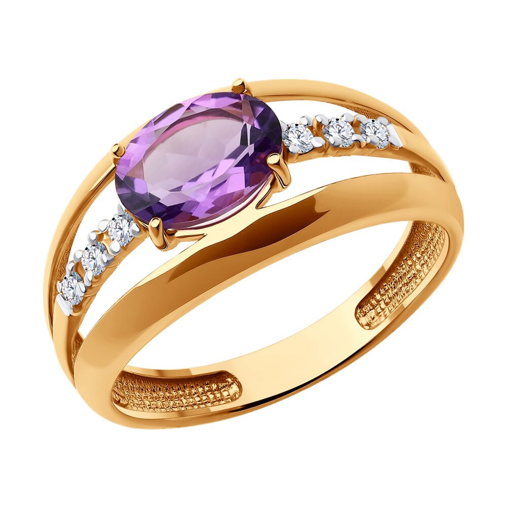 Золотое кольцо SOKOLOV с фианитом и аметистом 717084
