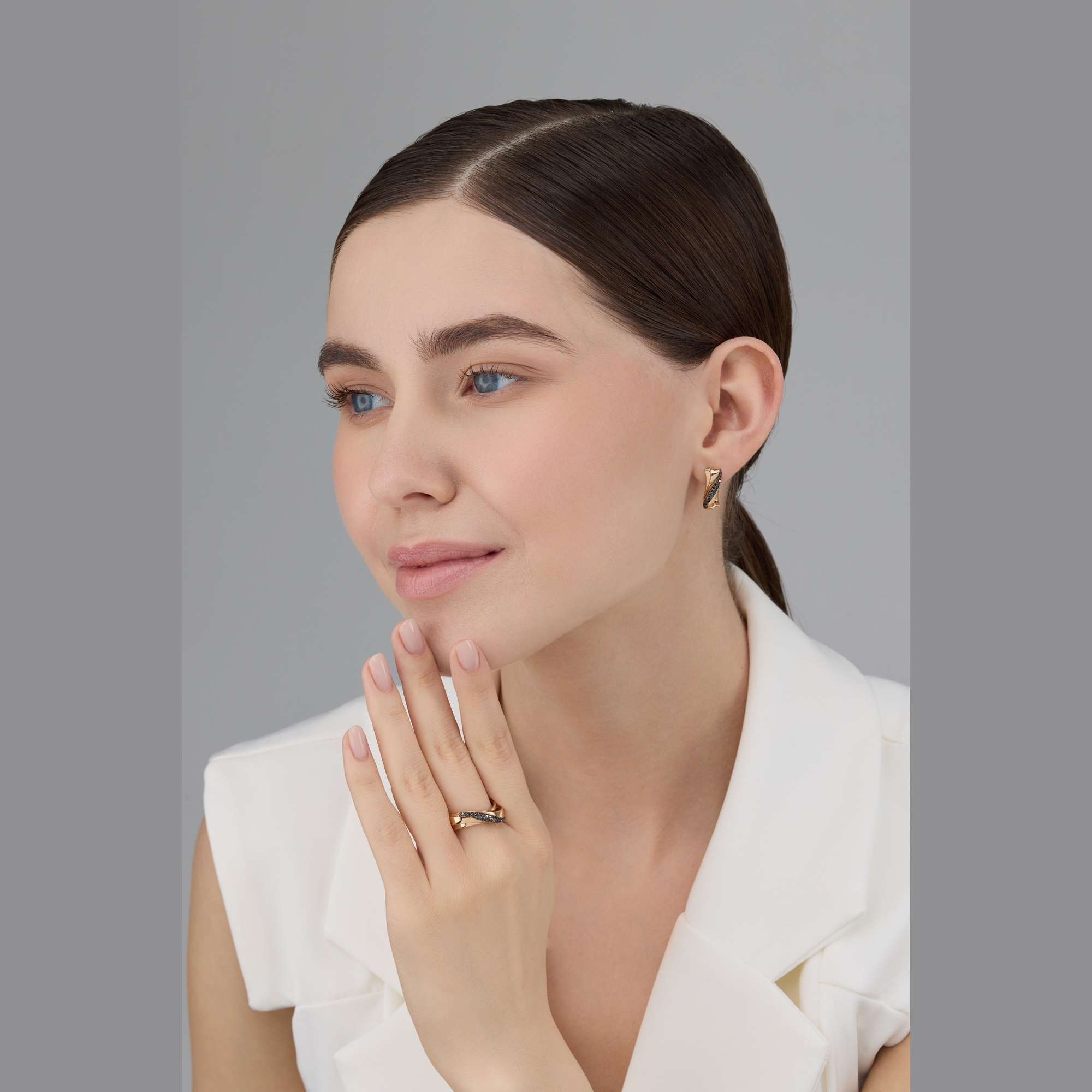 Золотое кольцо АЛЬКОР с чёрным бриллиантом 15635-113