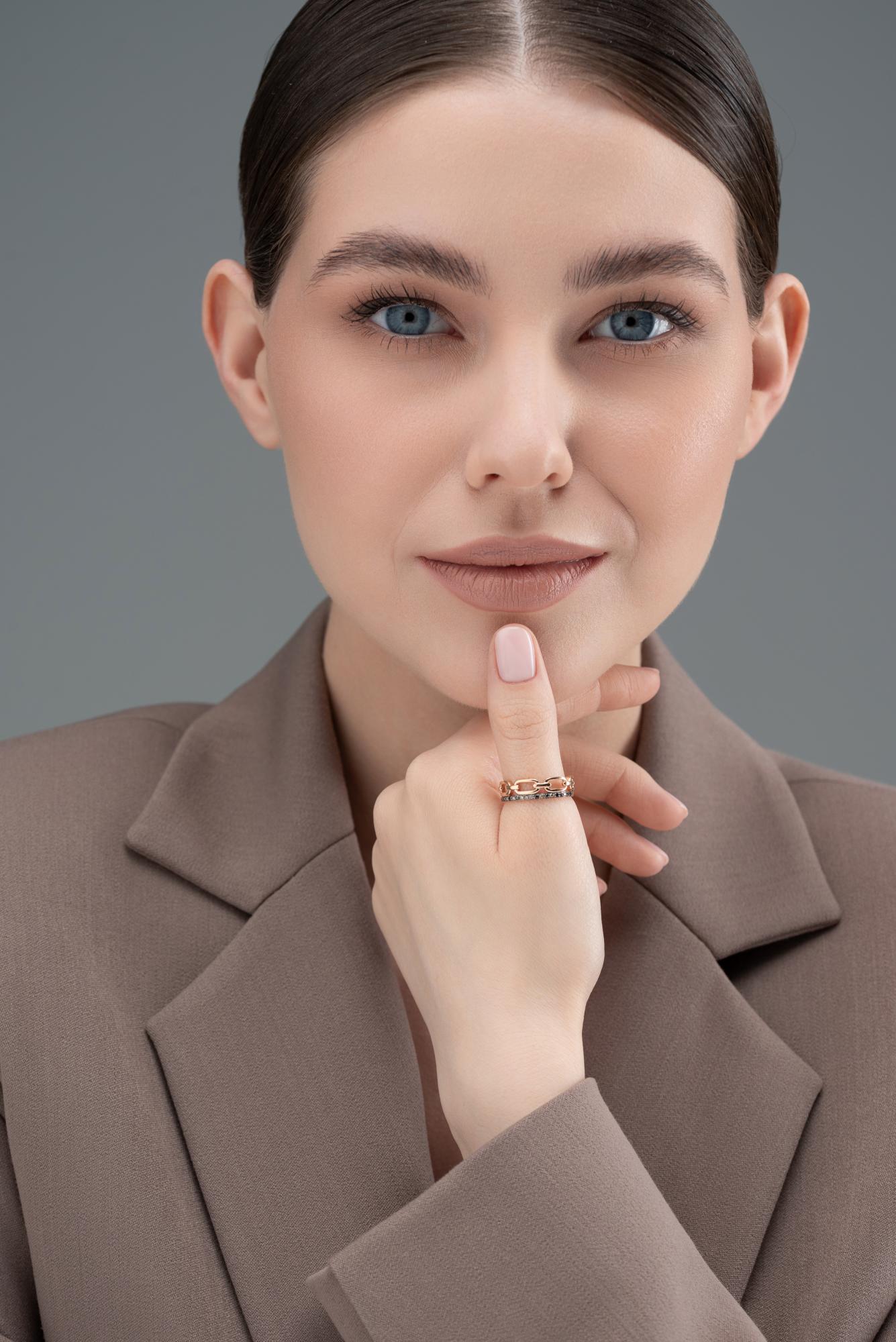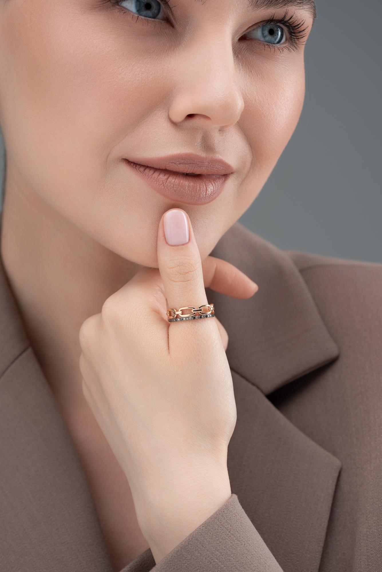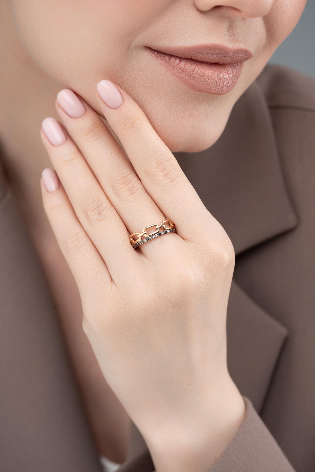 Золотое кольцо АЛЬКОР с чёрным бриллиантом и коньячным бриллиантом 16079-164