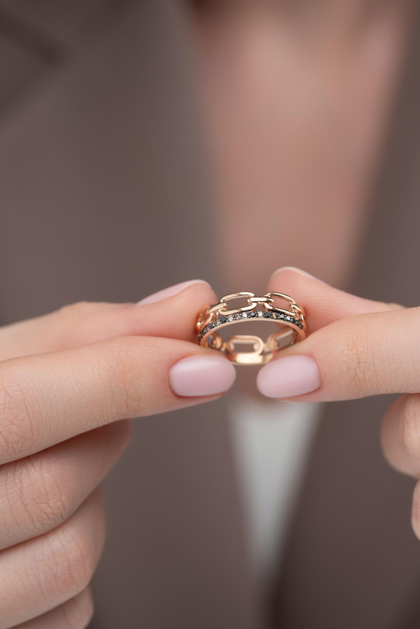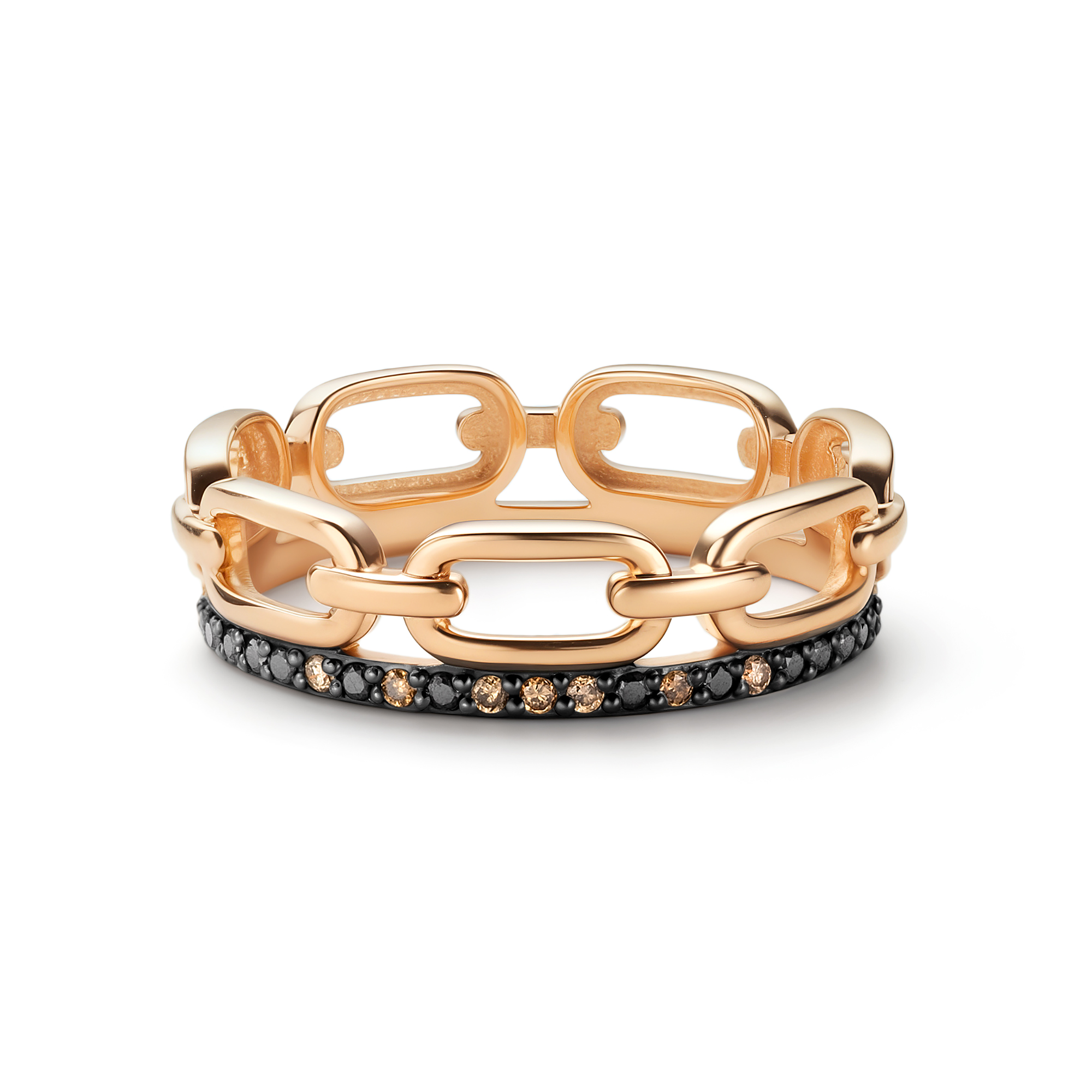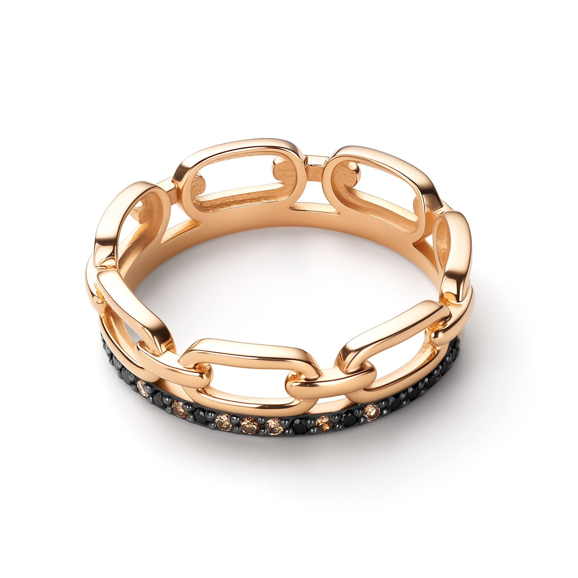Золотое кольцо АЛЬКОР с чёрным бриллиантом и коньячным бриллиантом 16079-164