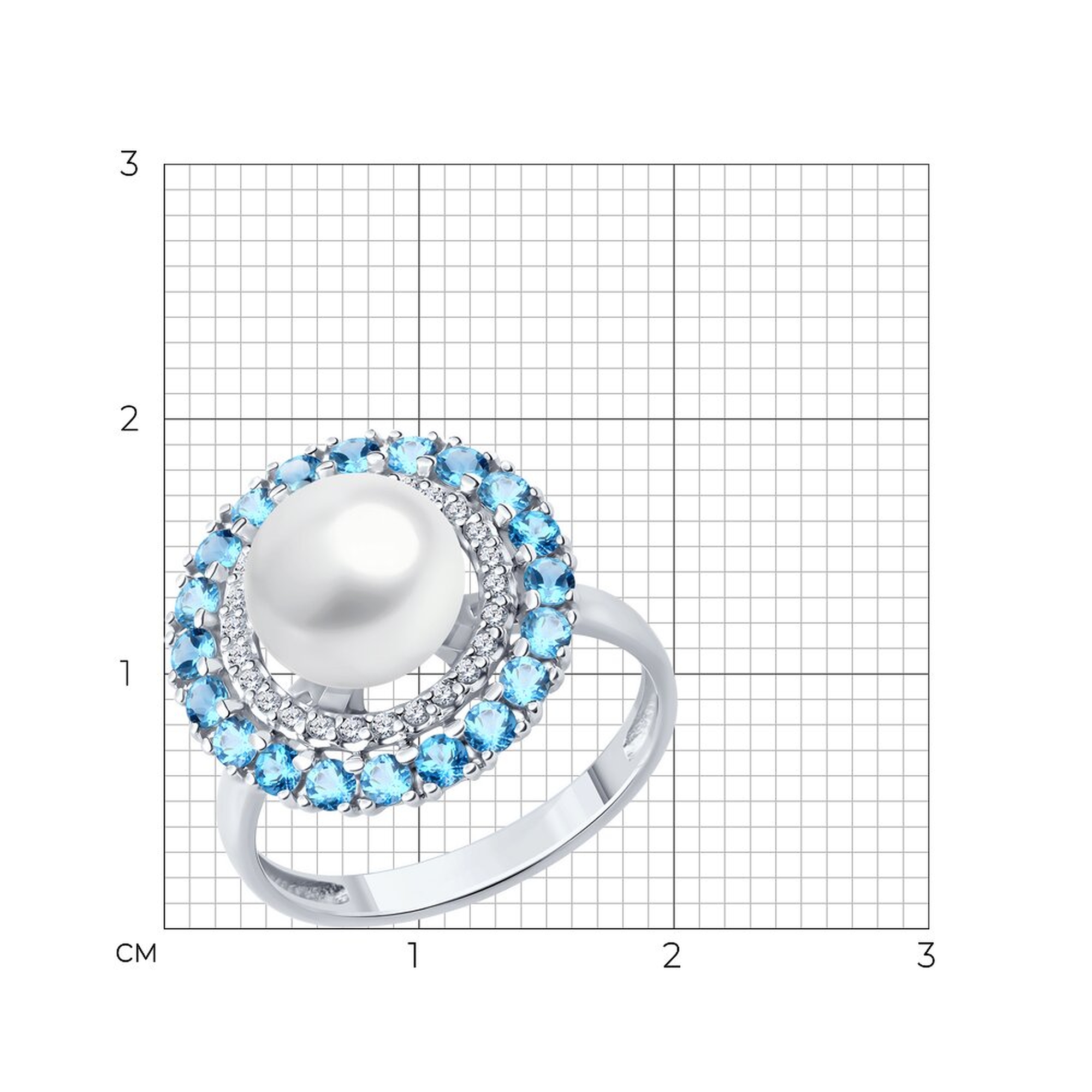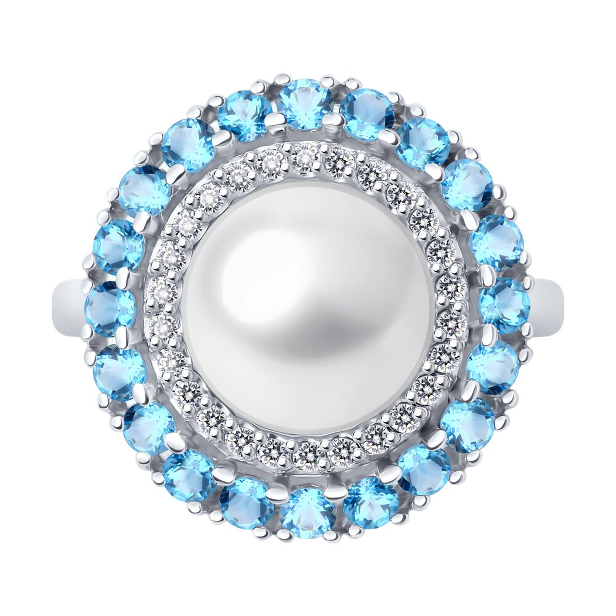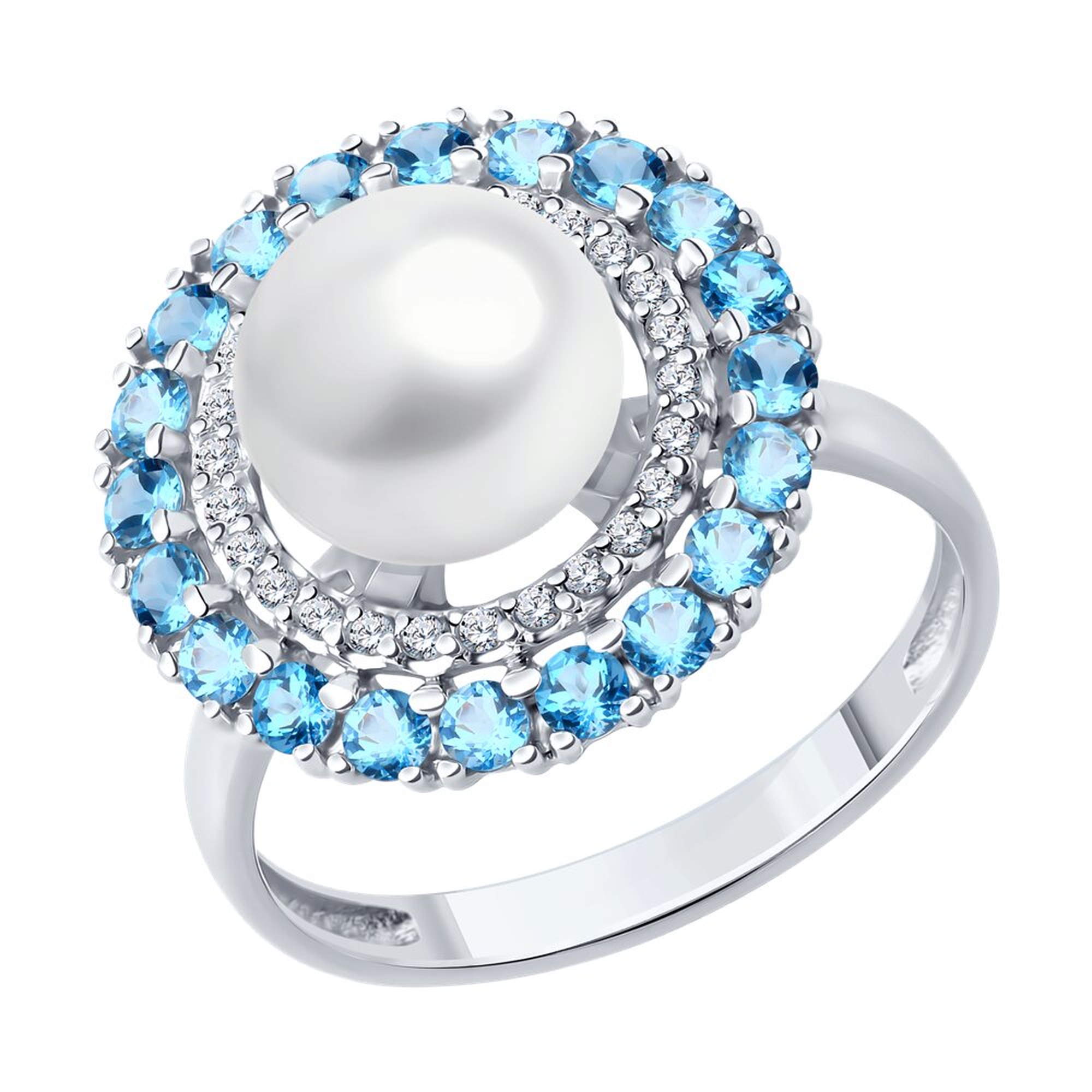 Кольцо из белого золота Diamant с топазом, фианитом и жемчугом 52-310-02848-1