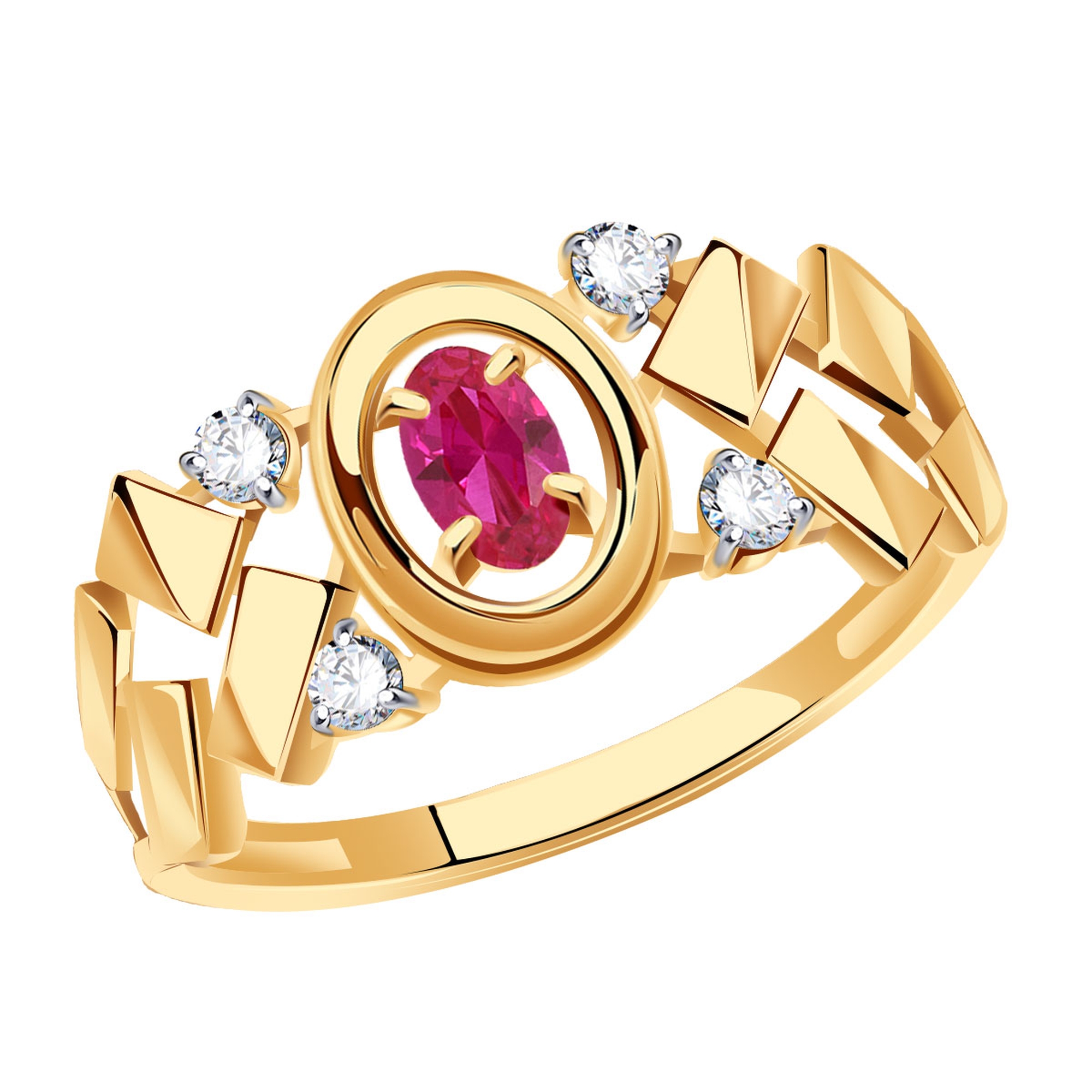 Золотое кольцо Александра с фианитом и рубиновым корундом кл4282-30ск