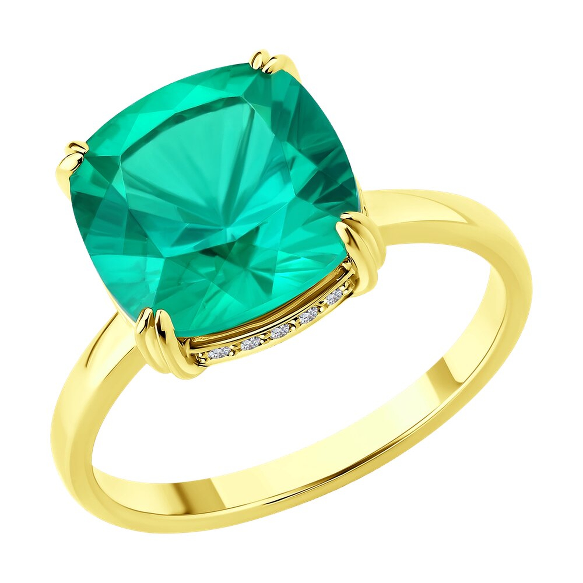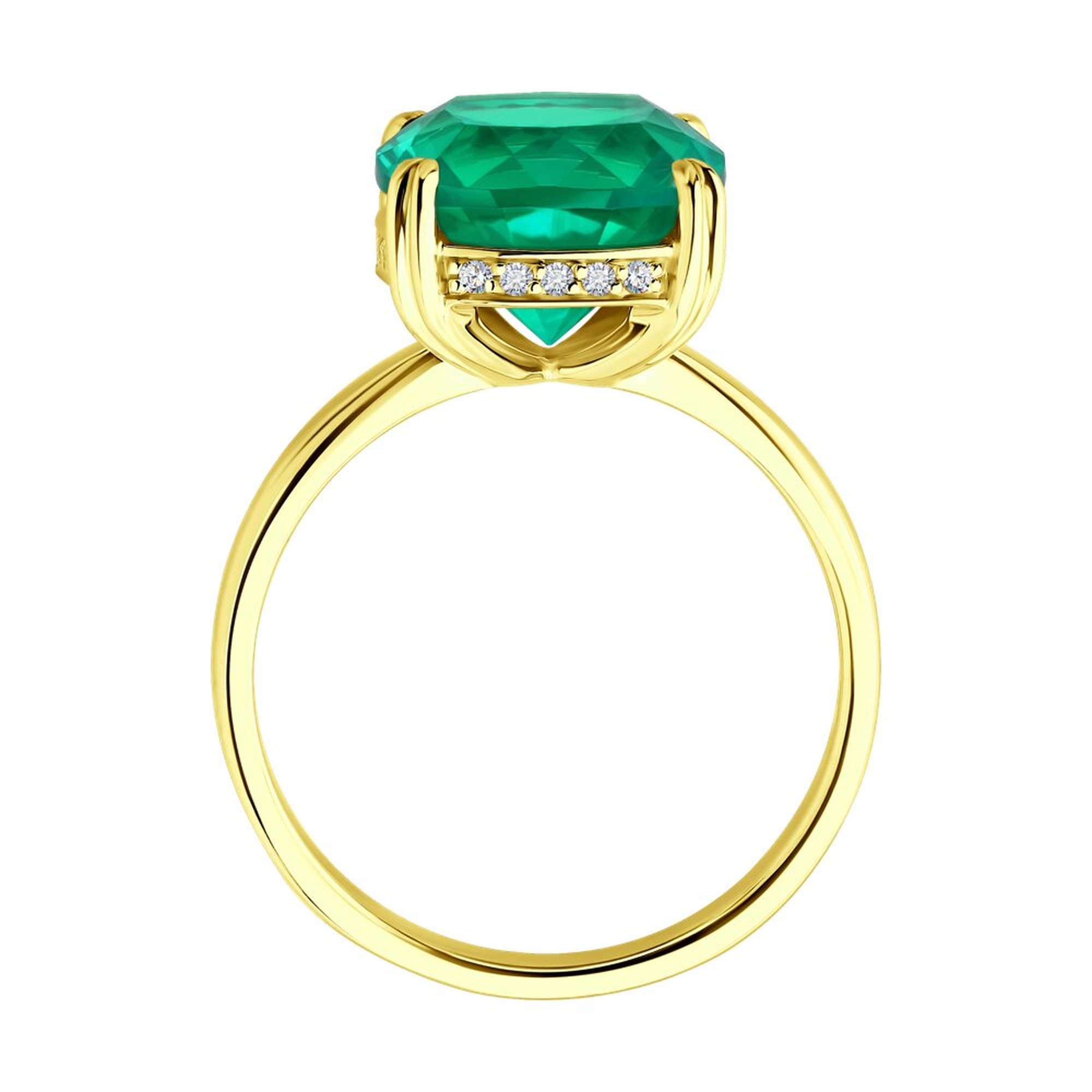 Золотое кольцо SOKOLOV с гидротермальным изумрудом и бриллиантом выращенным 3010729-2-5