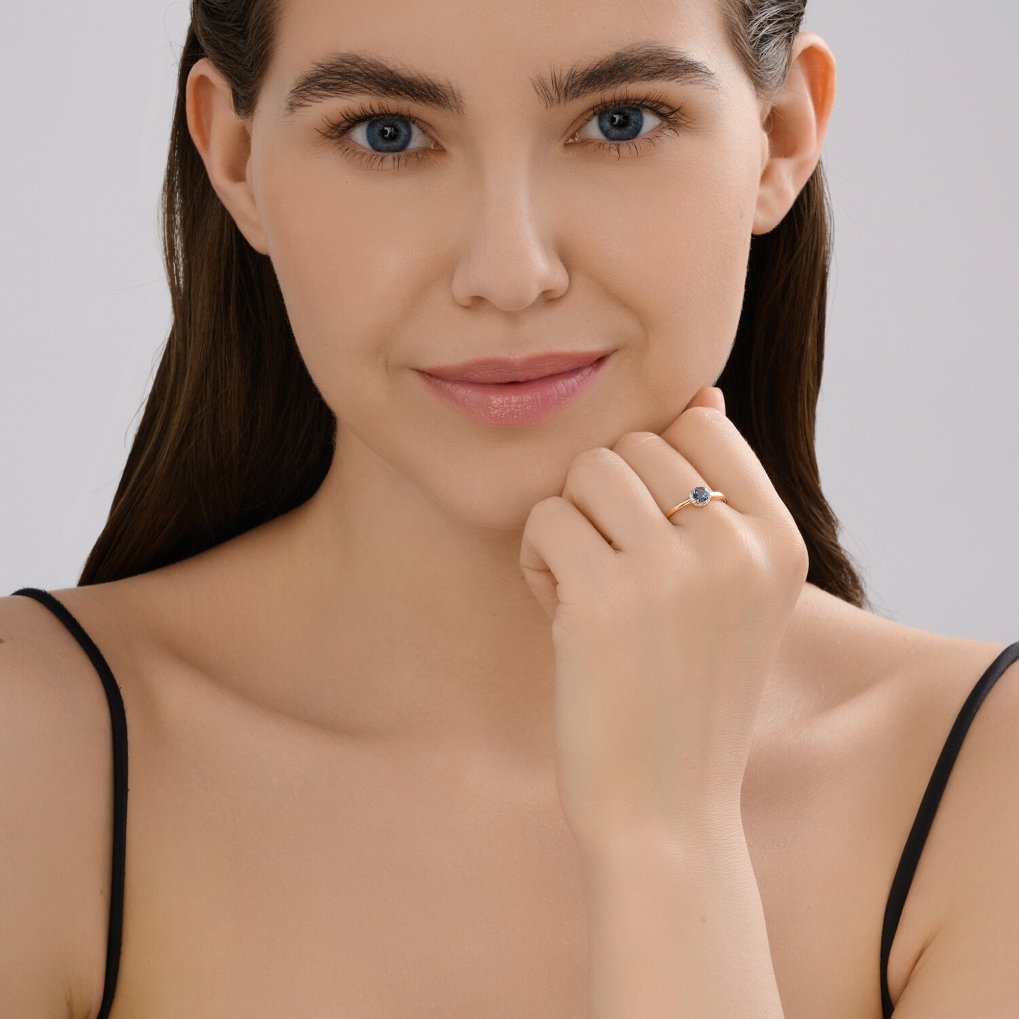 Золотое кольцо SOKOLOV с бриллиантом и Лондон топазом 71-00357