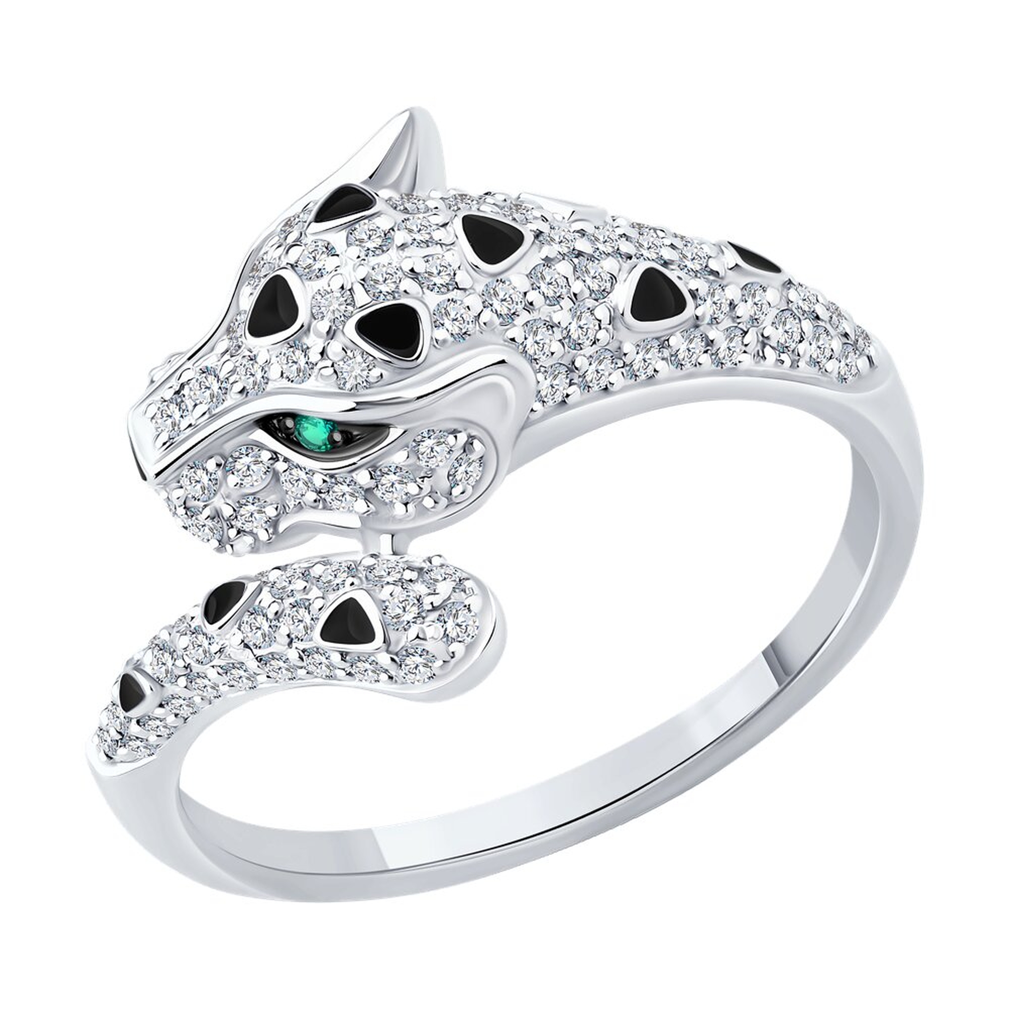 Золотое кольцо SOKOLOV с бриллиантом, изумрудом и эмалью 3010731-3