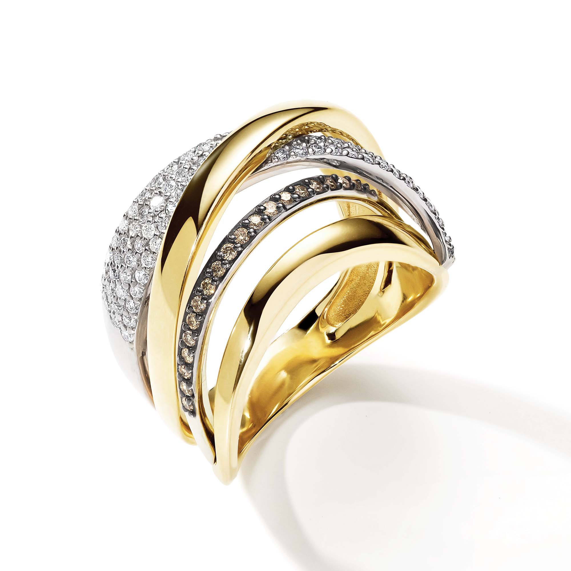 Кольцо из лимонного золота АЛЬКОР с бриллиантом и коньячным бриллиантом 15508-317