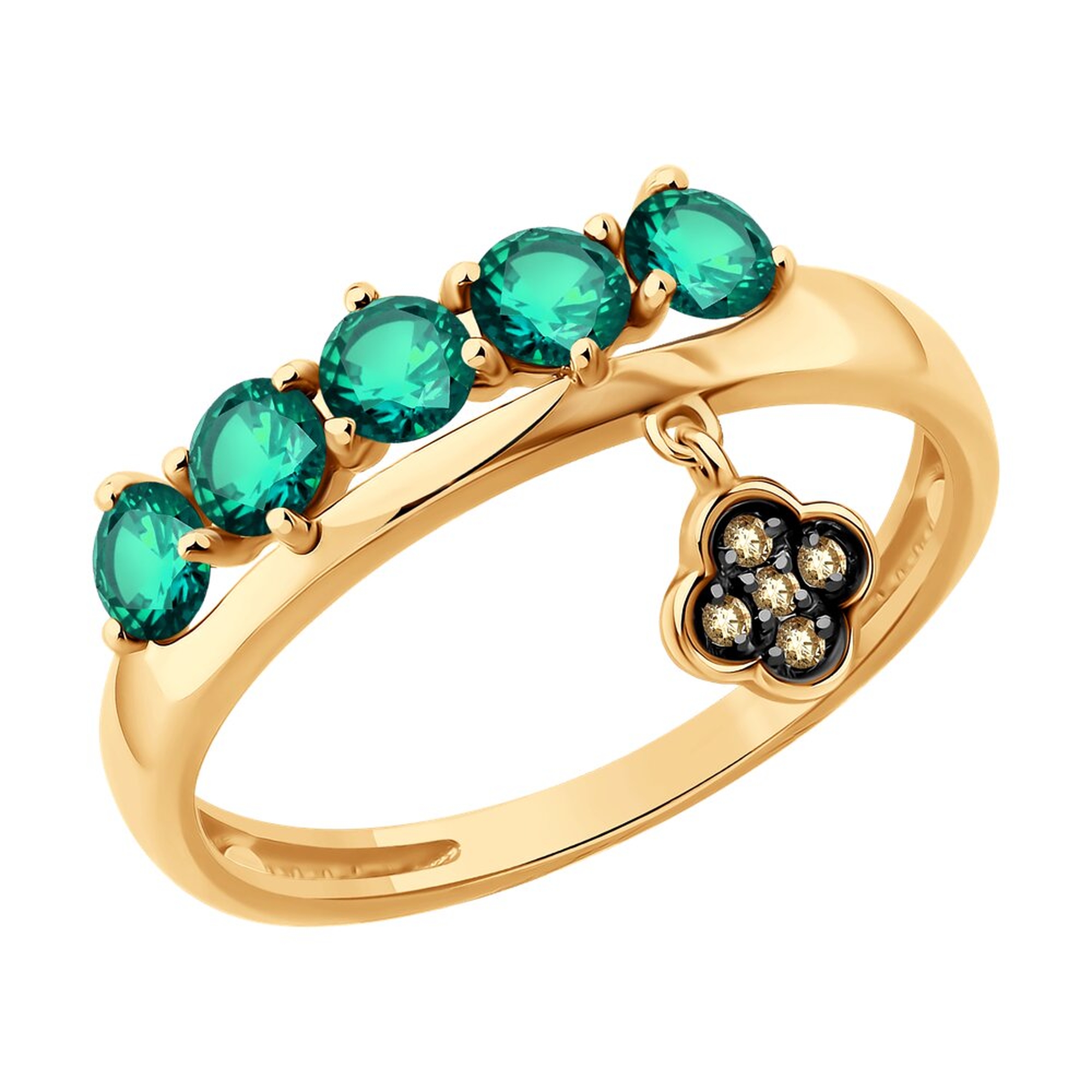 Золотое кольцо SOKOLOV с изумрудом и коньячным бриллиантом 3010764