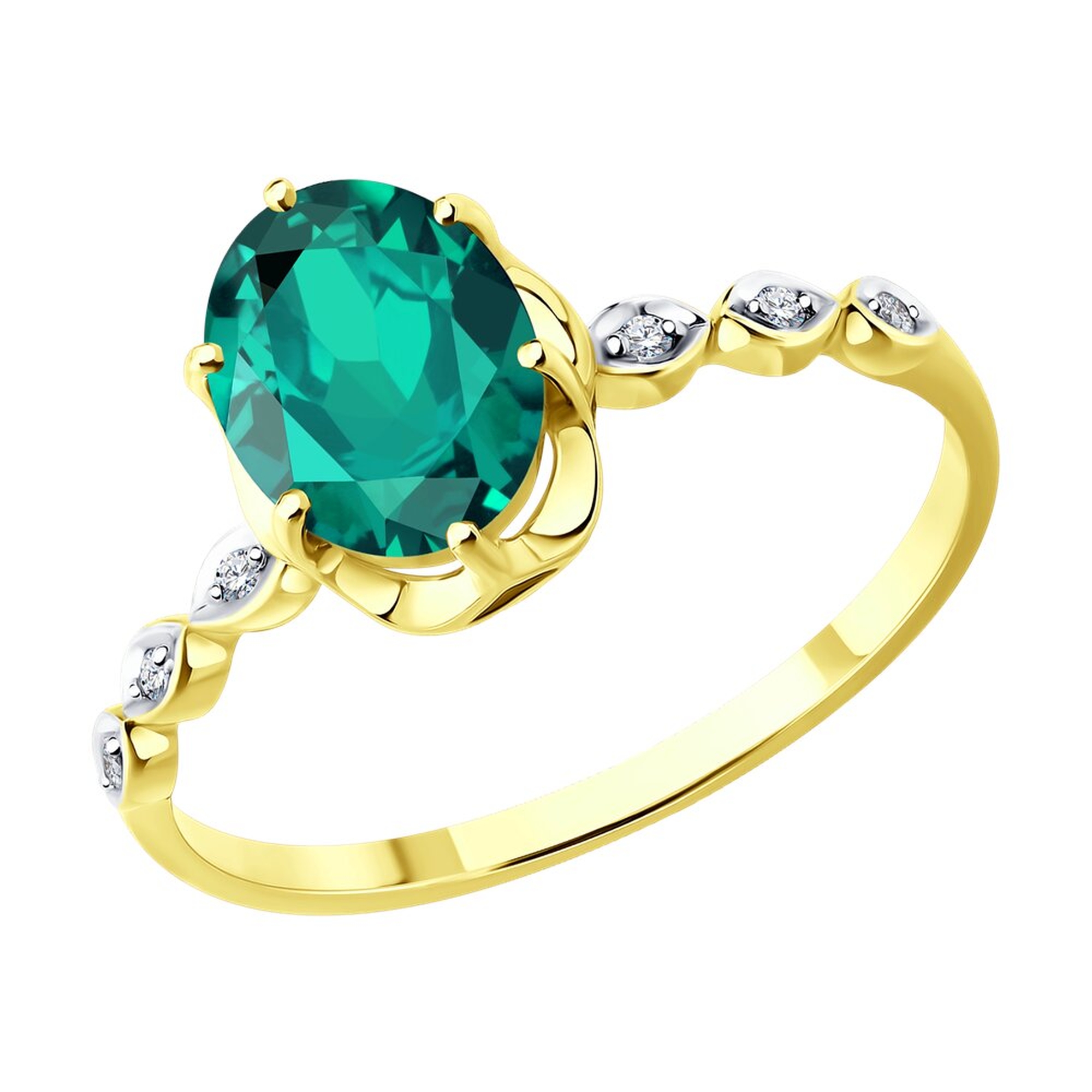 Золотое кольцо SOKOLOV с бриллиантом и изумрудом 3010780-2
