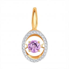Золотое кольцо Karatov с танцующим аметистом и фианитом Т14701Б408