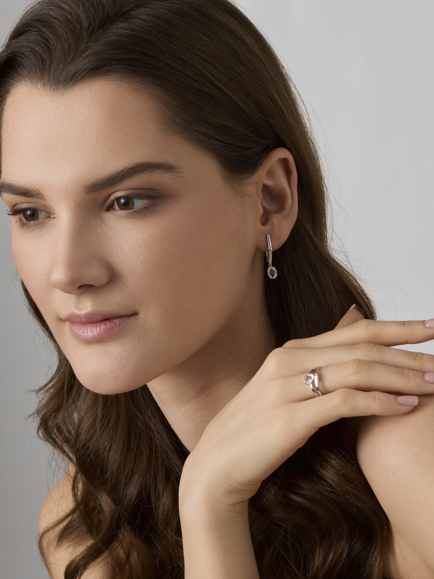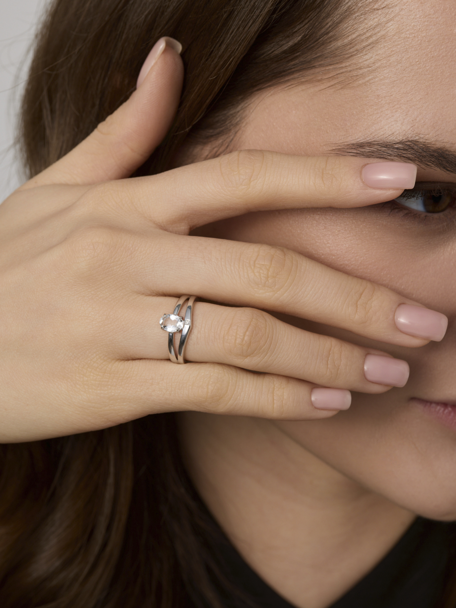 Серебряное кольцо АЛЬКОР с бриллиантом и горным хрусталём 01-5024/БРГХ-00