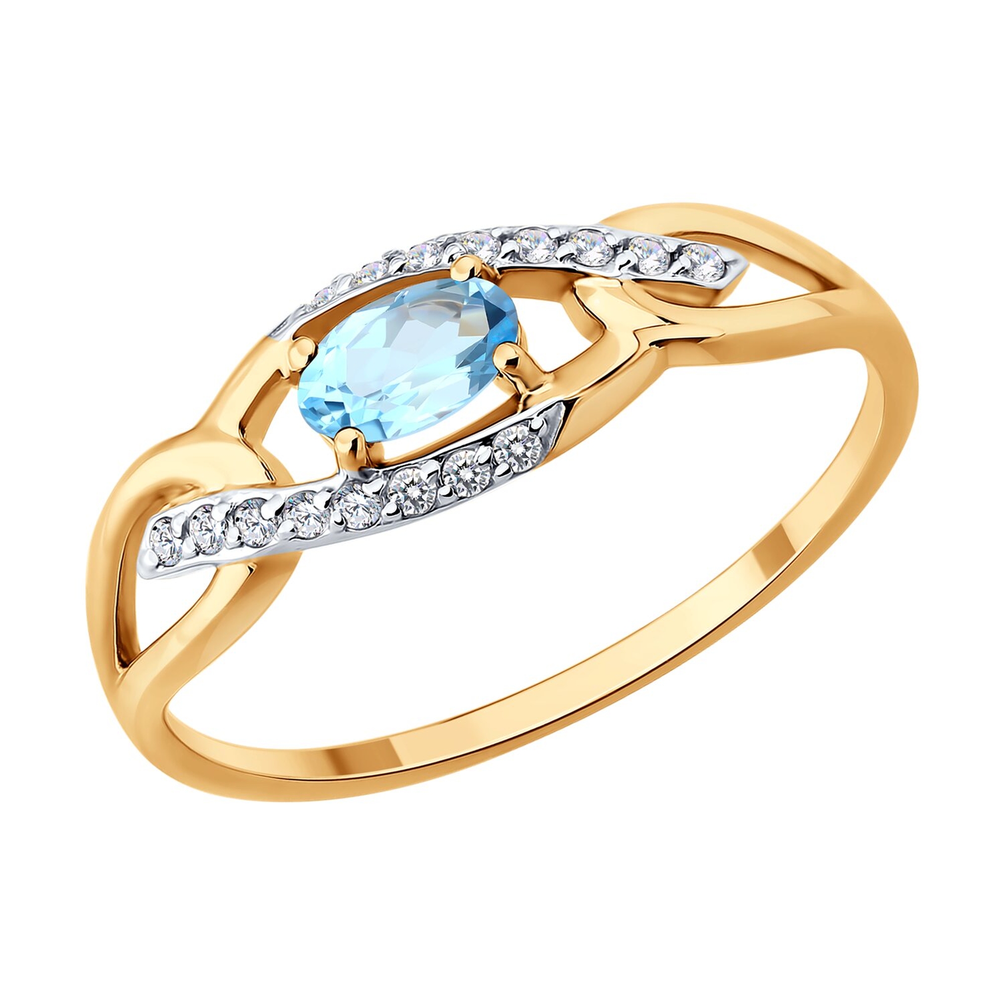 Золотое кольцо SOKOLOV с топазом и фианитом 717292