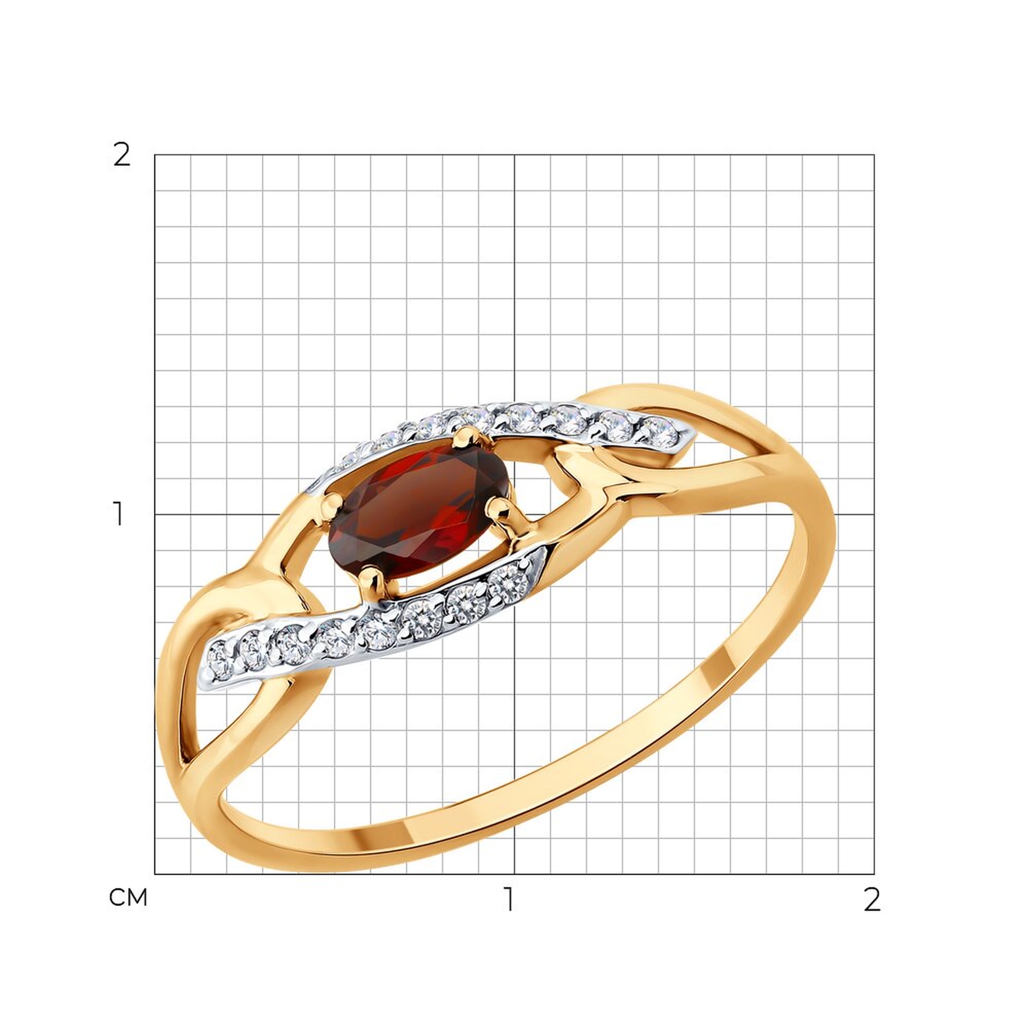 Золотое кольцо SOKOLOV с фианитом и гранатом 717293