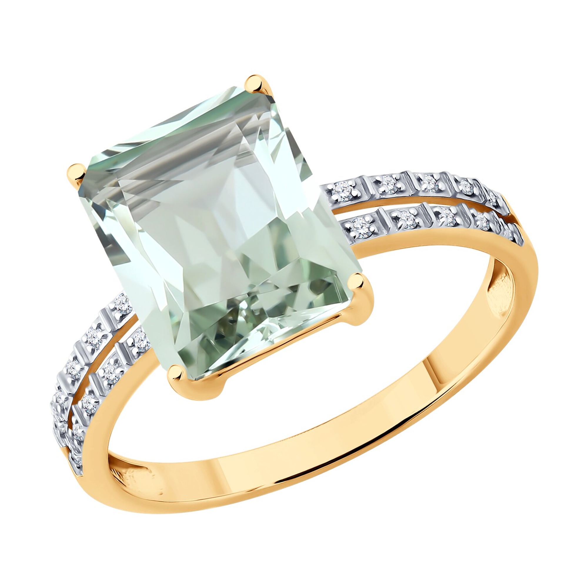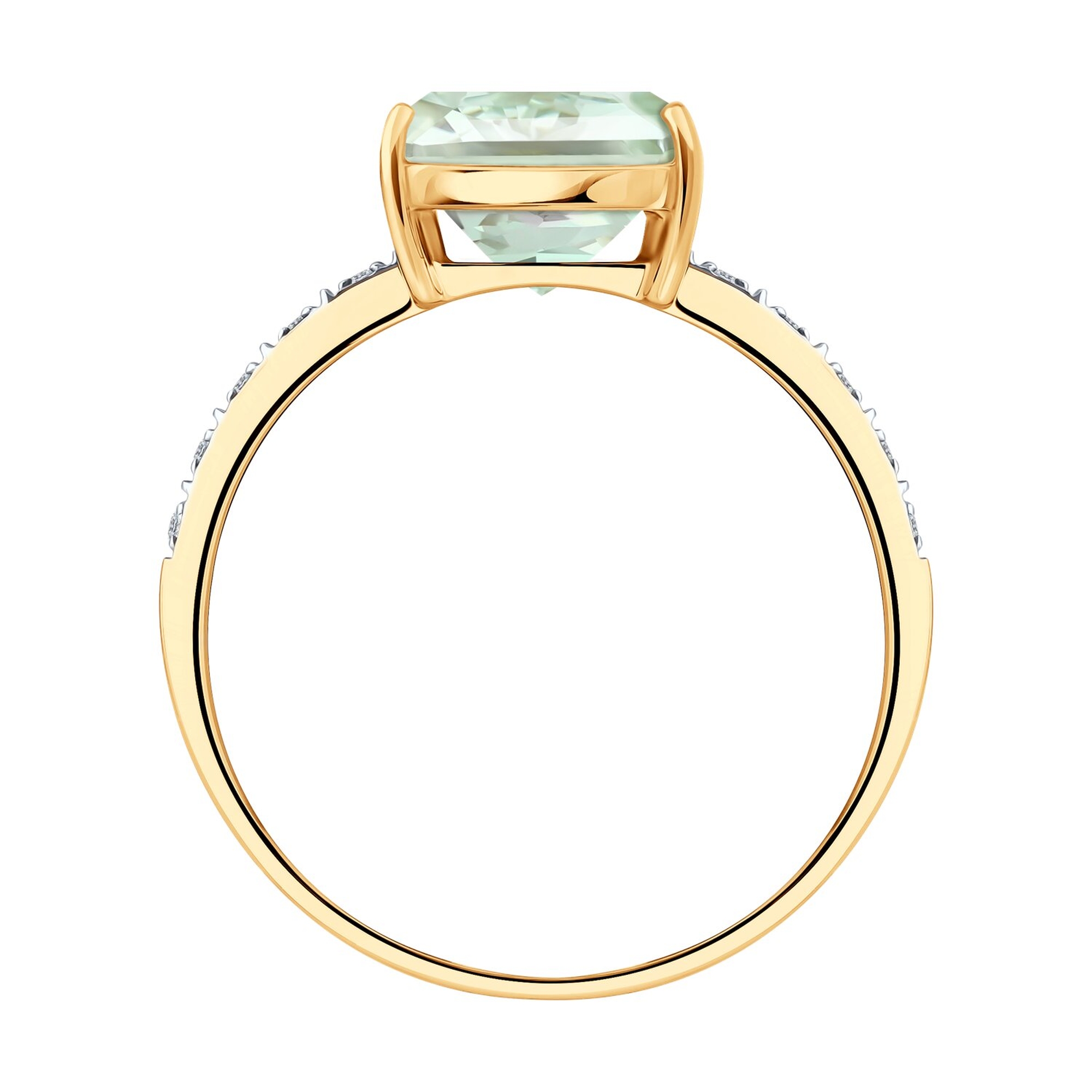 Золотое кольцо SOKOLOV с бриллиантом и празиолитом 71-00426