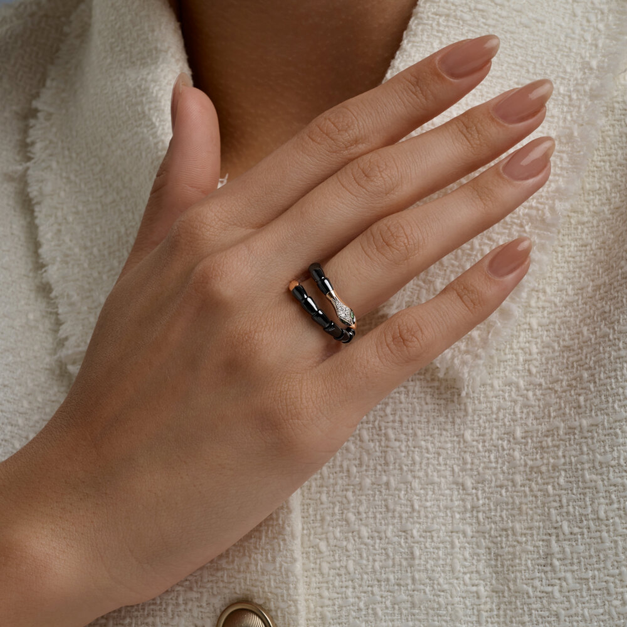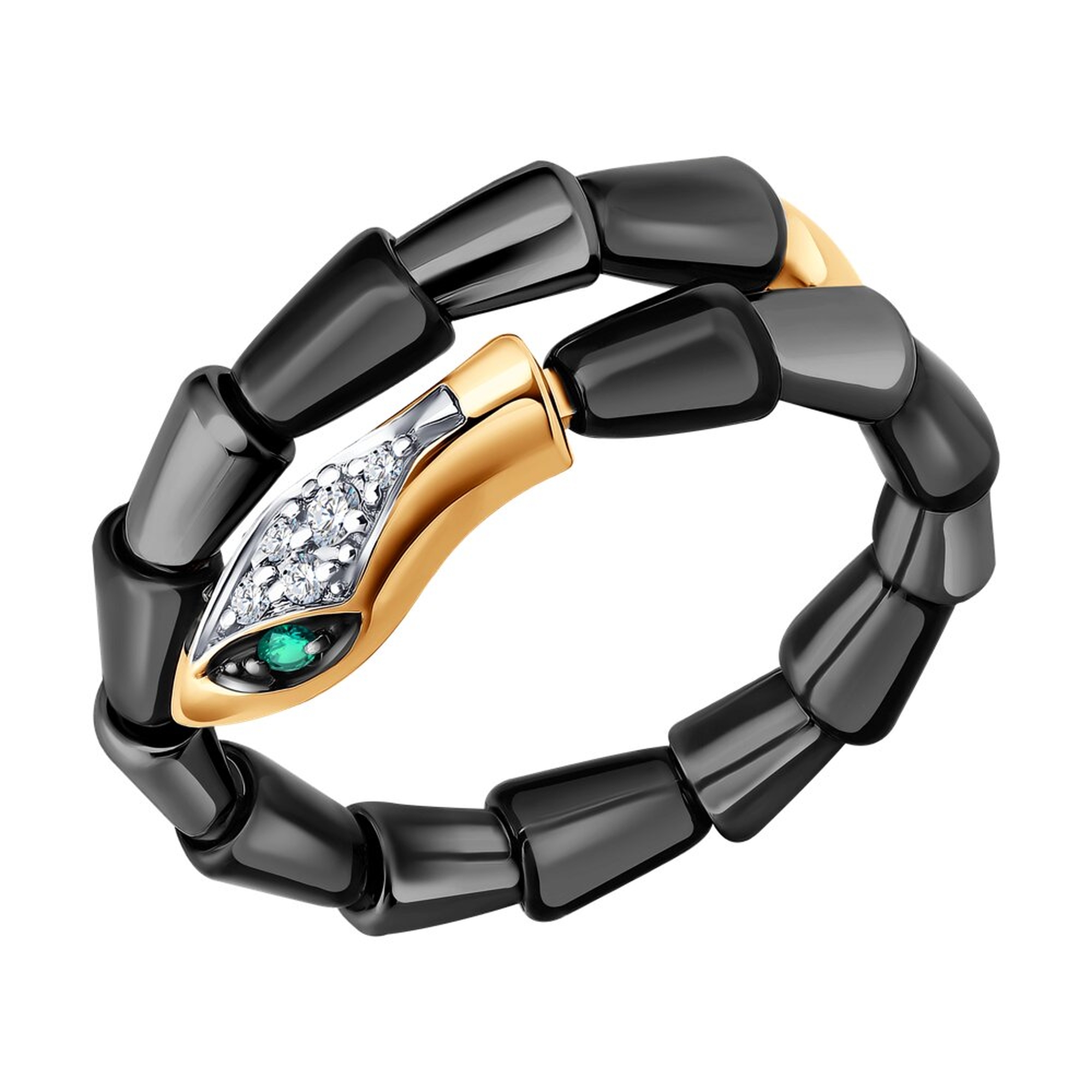 Золотое кольцо SOKOLOV с бриллиантом, изумрудом и керамикой 6015133