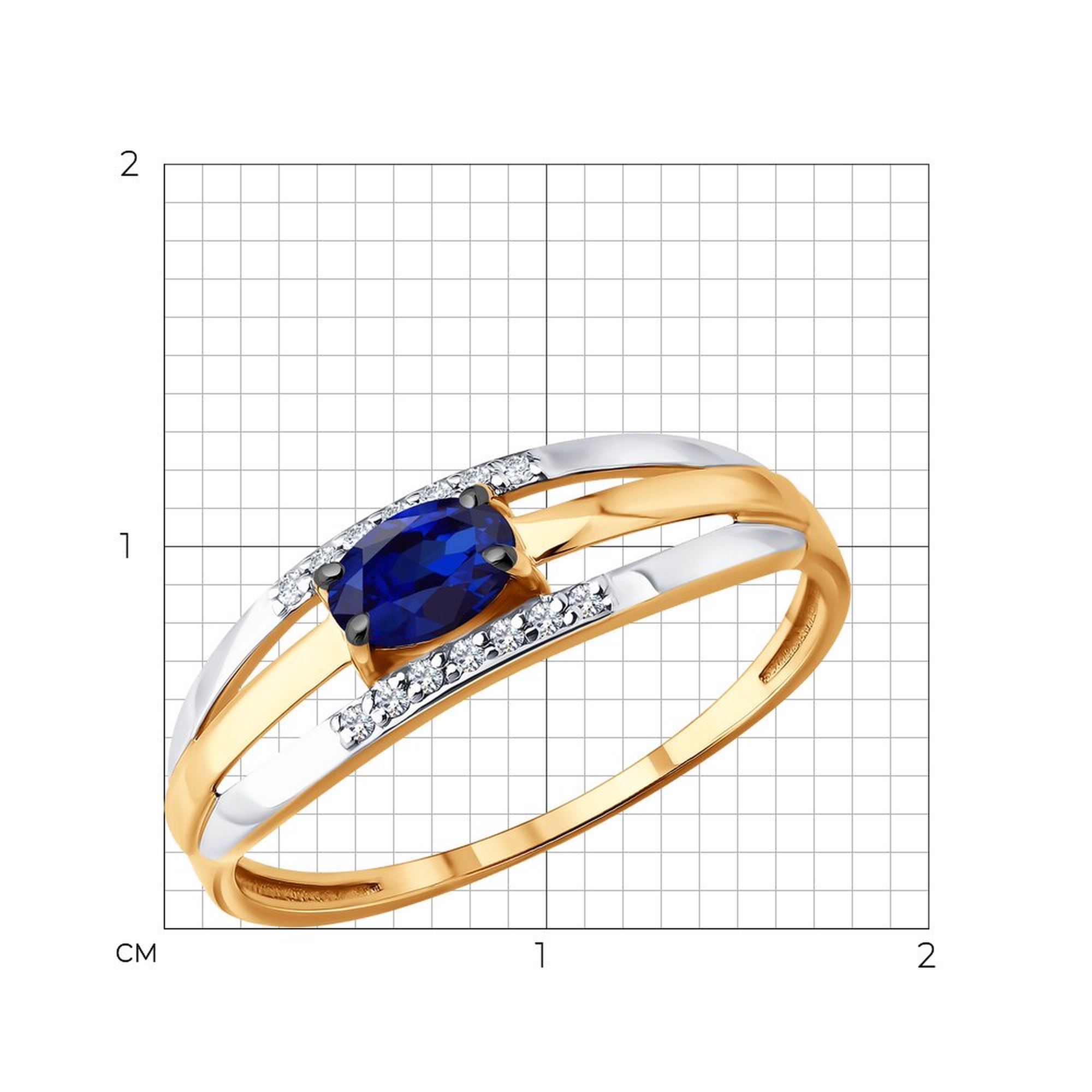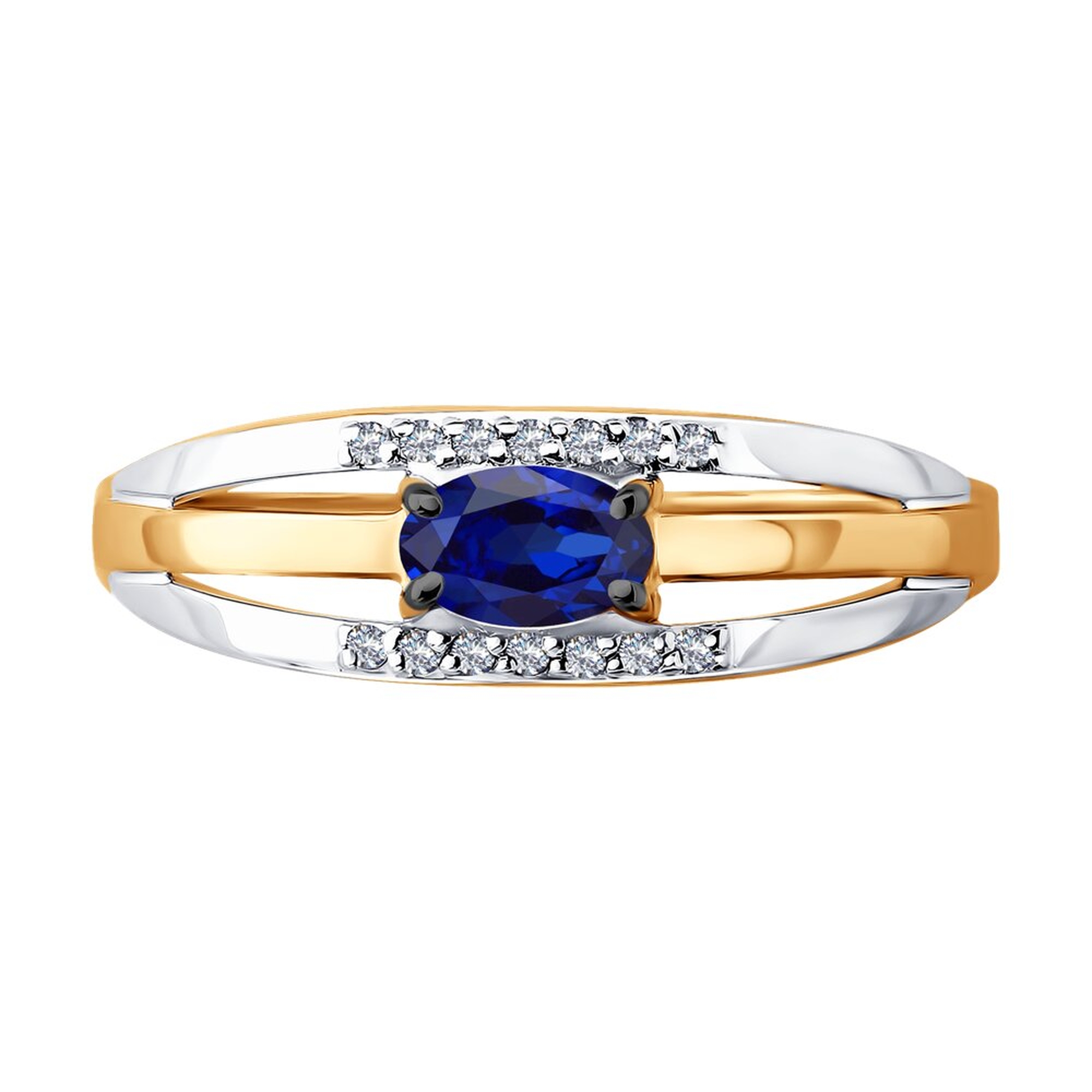 Золотое кольцо Diamant с бриллиантом и сапфиром 51-210-01279-3