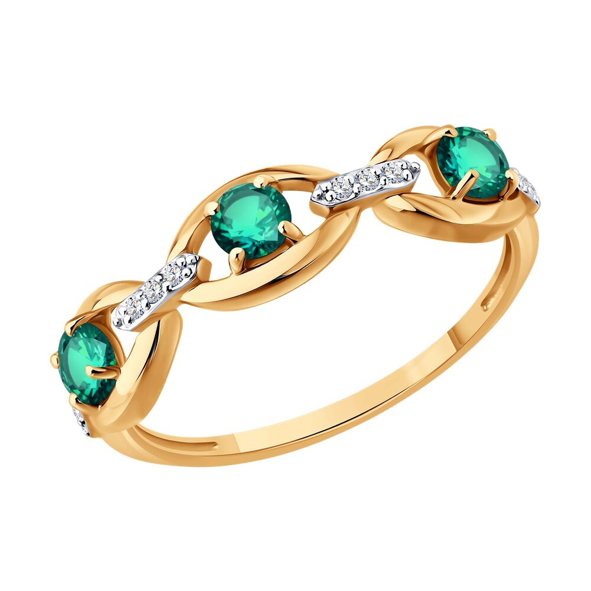 Золотое кольцо SOKOLOV с бриллиантом и изумрудом 3010799
