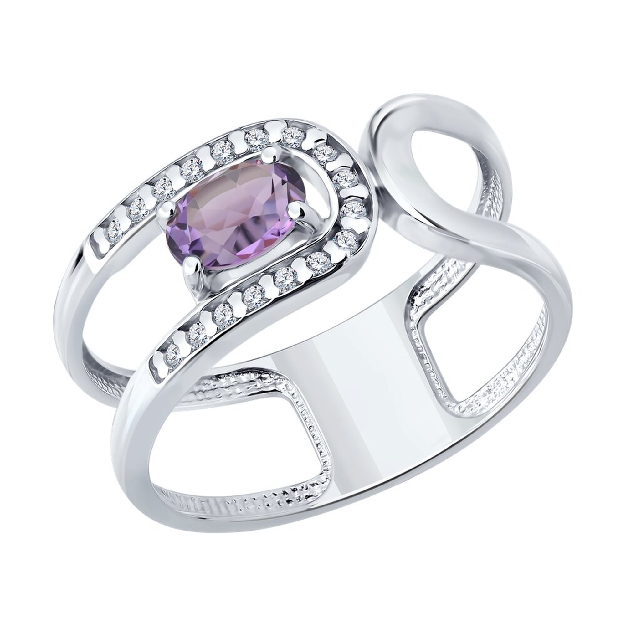 Серебряное кольцо SOKOLOV с фианитом и аметистом 92014836