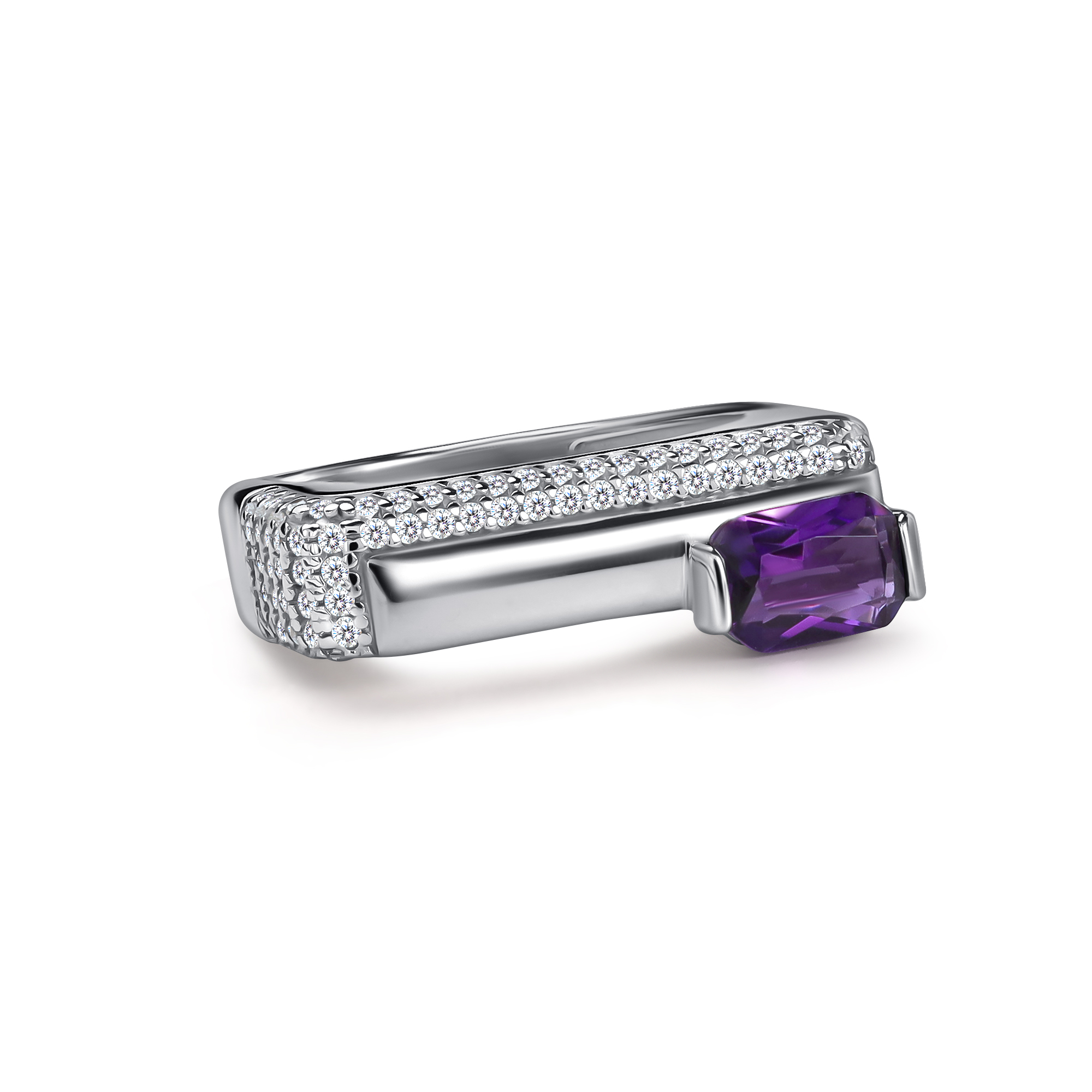 Серебряное кольцо АЛЬКОР с фианитом и аметистом 01-5459/00АМ-00