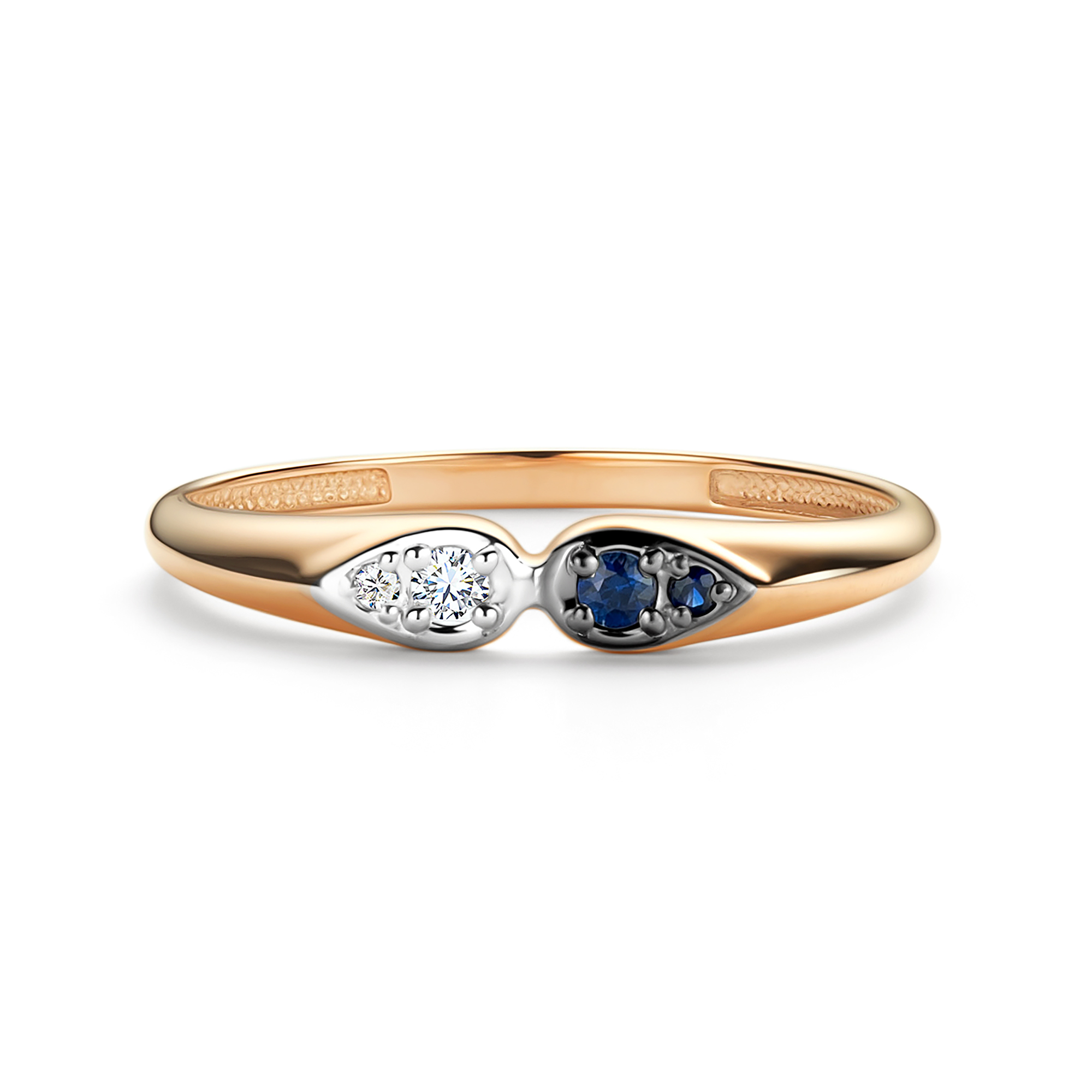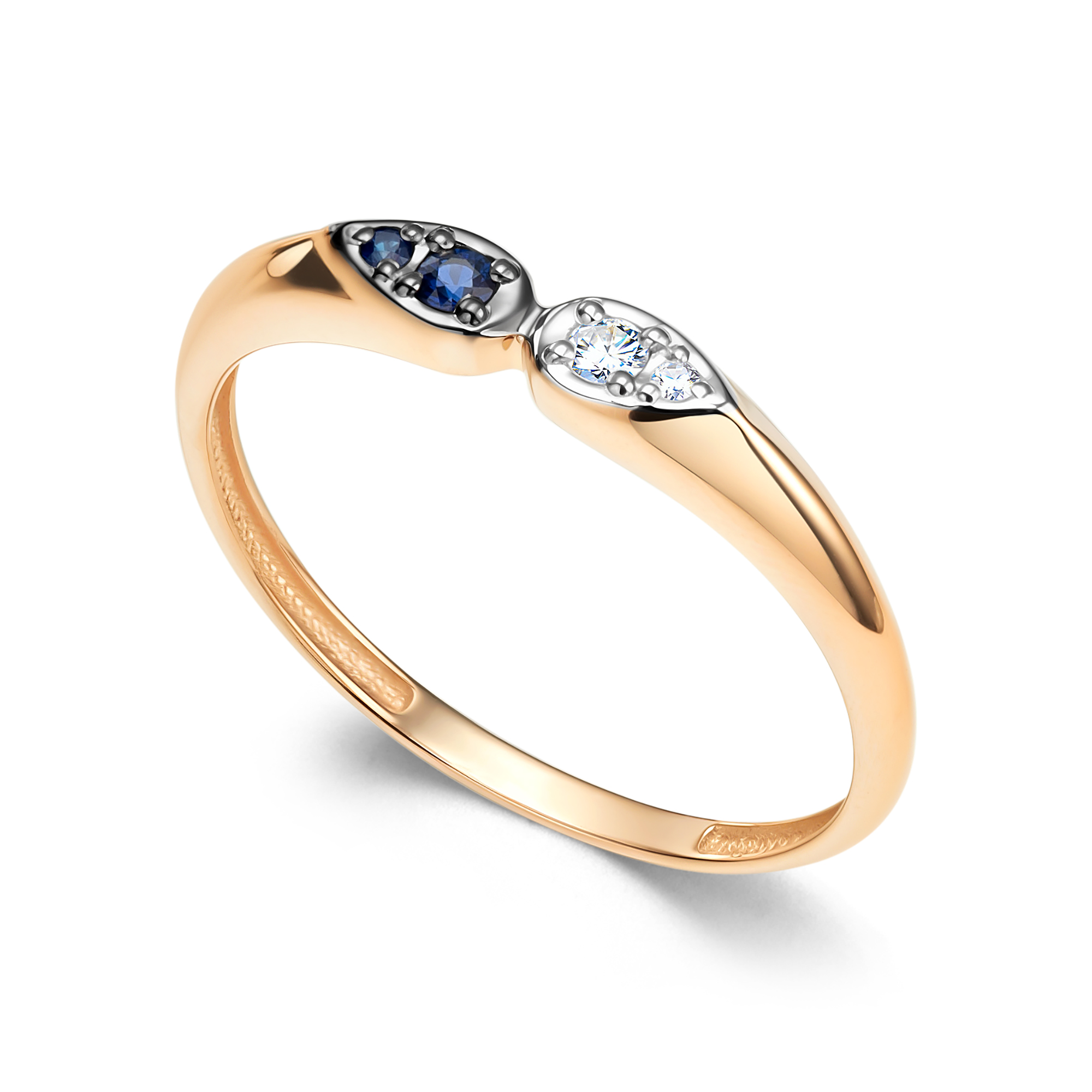 Золотое кольцо АЛЬКОР с бриллиантом и сапфиром 16565-102